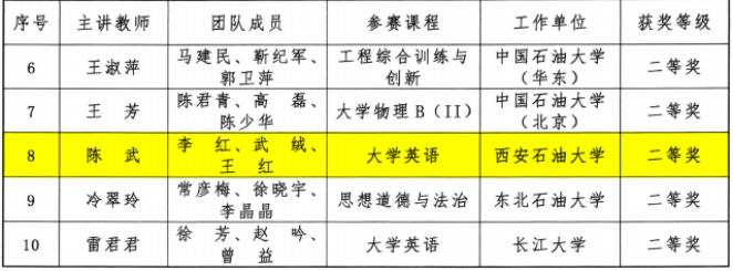 近日,首届“中国石油教育学会教学创新大赛”在西南石油大学圆满落幕。我院陈武教授带领李红、武绒、王红组成的大学英语教学团队参加了基础课程组比赛,并荣获二等奖。