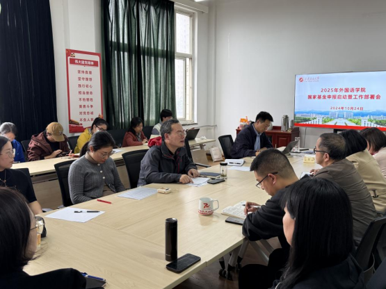 为切实做好2025年国家社科基金项目申报工作,提升学院申报质量和成功率,进一步推动学科建设和科研水平,外国语学院于10月24日下午在雁塔校区华油能源楼727会议室召开2025年度国家社科基金项目申报动员部署会。学院党委书记张建高、副院长陈武、副高级以上职称教师、博士及在读博士教师参加了会议。会议由副院长陈武主持。