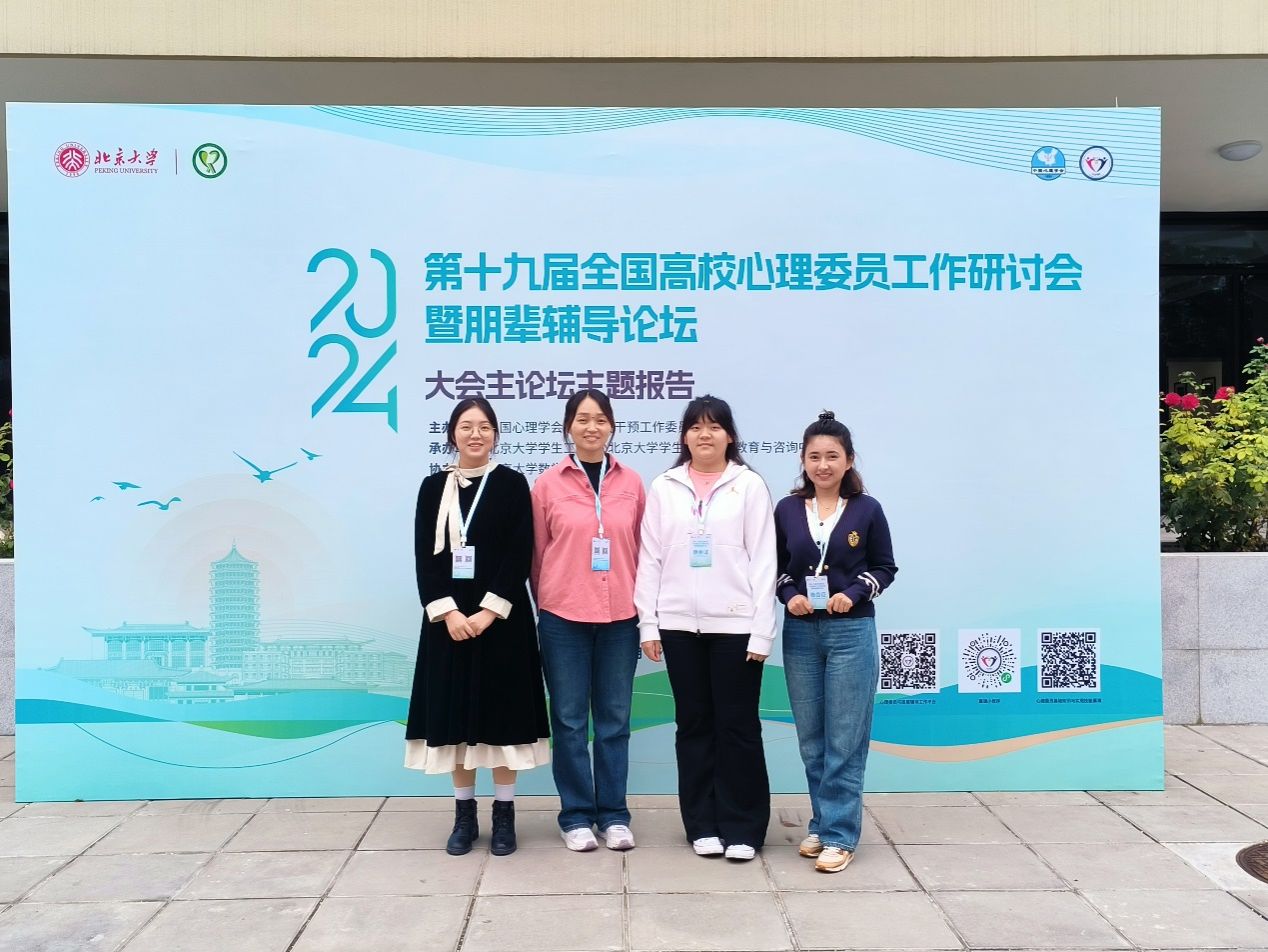 为加强高校心理委员工作队伍建设,探索心理委员工作以及朋辈心理辅导的新方法、新路径,促进各高校之间心理健康服务理论与实践工作的交流与合作,10月16至18日,由中国心理学会心理危机干预工作委员会全国高校心理委员研究协作组主办的第十九届全国高校心理委员工作研讨会暨朋辈辅导论坛在北京大学举行,william学生心理成长指导中心专职教师赵晶、土木工程学院心理专干奴丽艳木ž夏甫开提,2023校级优秀心理委员代表计算机学院计科2102李坤、经济管理学院金融CFA2201周昱竹前往参会。李坤、周昱竹同时入选《2024全国百名心理委员风采展》。