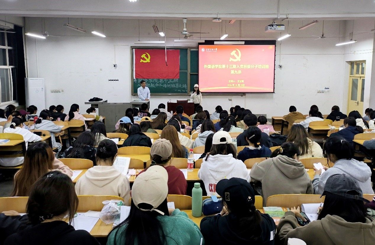 10月29日晚,外国语学院在鄠邑校区博思楼B221教室举办第十三期入党积极分子培训班第九讲。外国语学院党委副书记王业青应邀担任主讲,学院2024年全体入党积极分子参加培训。