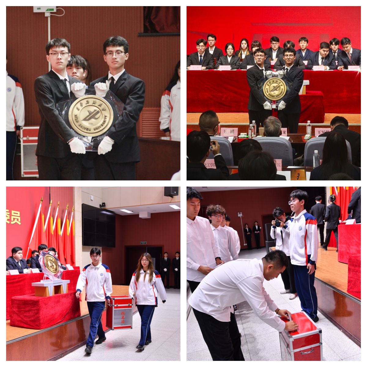 新一届学生会委员会委员依次上台与上届学生会委员会委员握手致谢并合影留念