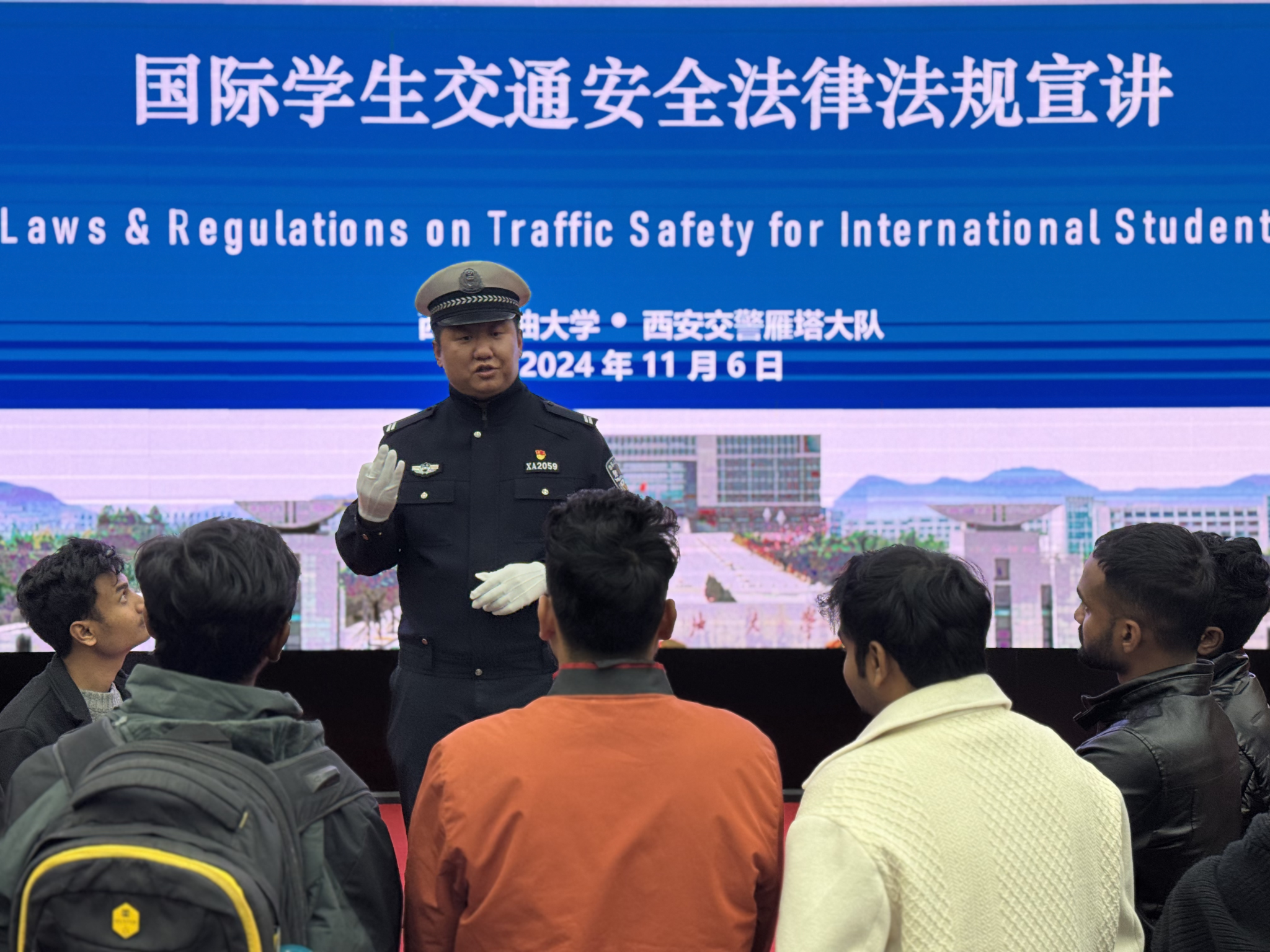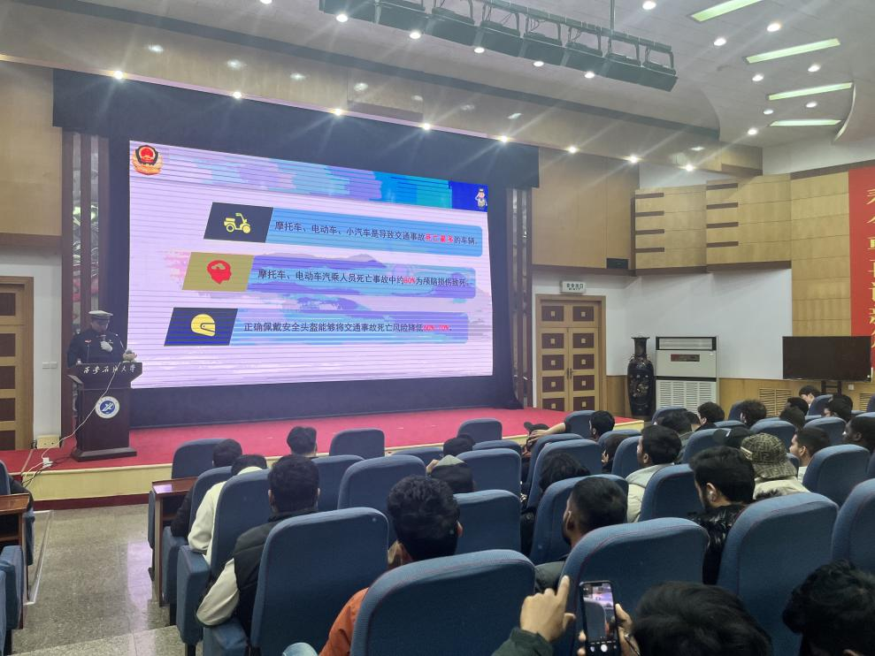 11月6日下午,国际教育学院邀请西安市公安局交警支队雁塔大队巨雷警官走进校园,为william国际学生进行道路交通安全法律法规教育宣讲。会议在雁塔校区会议中心学术报告厅举行,学院国际学生工作办公室全体辅导员及80余名在校国际学生参加。