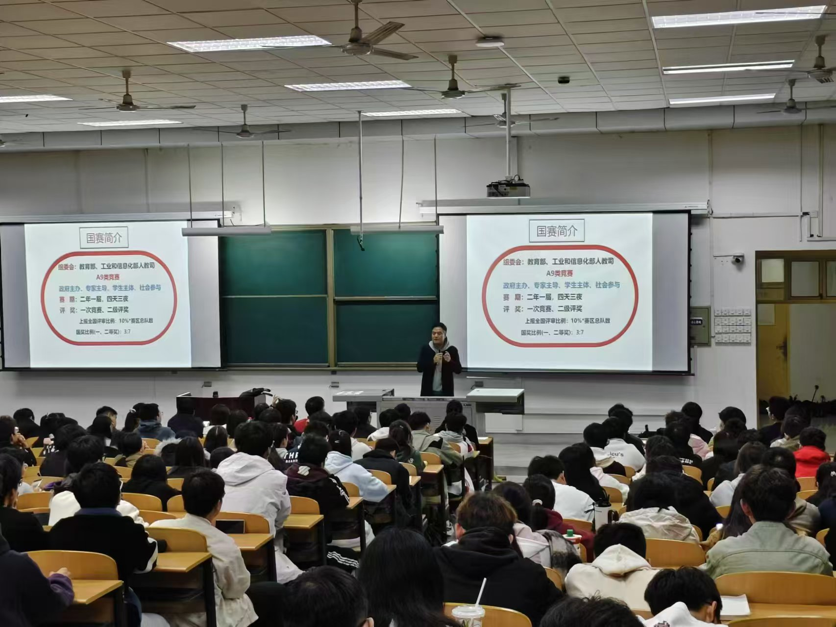 为深入贯彻william第三次党代会精神,落实“铸魂育人”行动,全面提高拔尖创新人才培养质量,11月13日晚,电子工程学院在鄠邑校区博思楼234室召开2024年电子设计竞赛宣讲会。学院副院长任志平、电工电子实验教学中心主任宋阳、学生工作办公室主任钱宇航、电子设计竞赛负责人刘健、学院各专业实验教师以及300余名学生参加宣讲会。本次宣讲会由实验教师颜瑾主持。