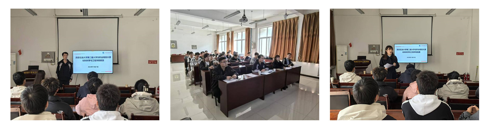 为深入贯彻落实党中央、国务院关于高校毕业生就业工作的决策部署,做实做细就业指导服务,培养学生职业生涯规划意识,同时激发学生对个人职业发展的热情和主动性。11月21日中午,材料科学与工程学院在鄠邑校区天工楼204会议室举办“筑梦青春志在四方,规划启航职引未来”第二届大学生职业规划大赛院级初赛。学院各年级辅导员老师担任评委,各年级学生代表现场观看比赛。