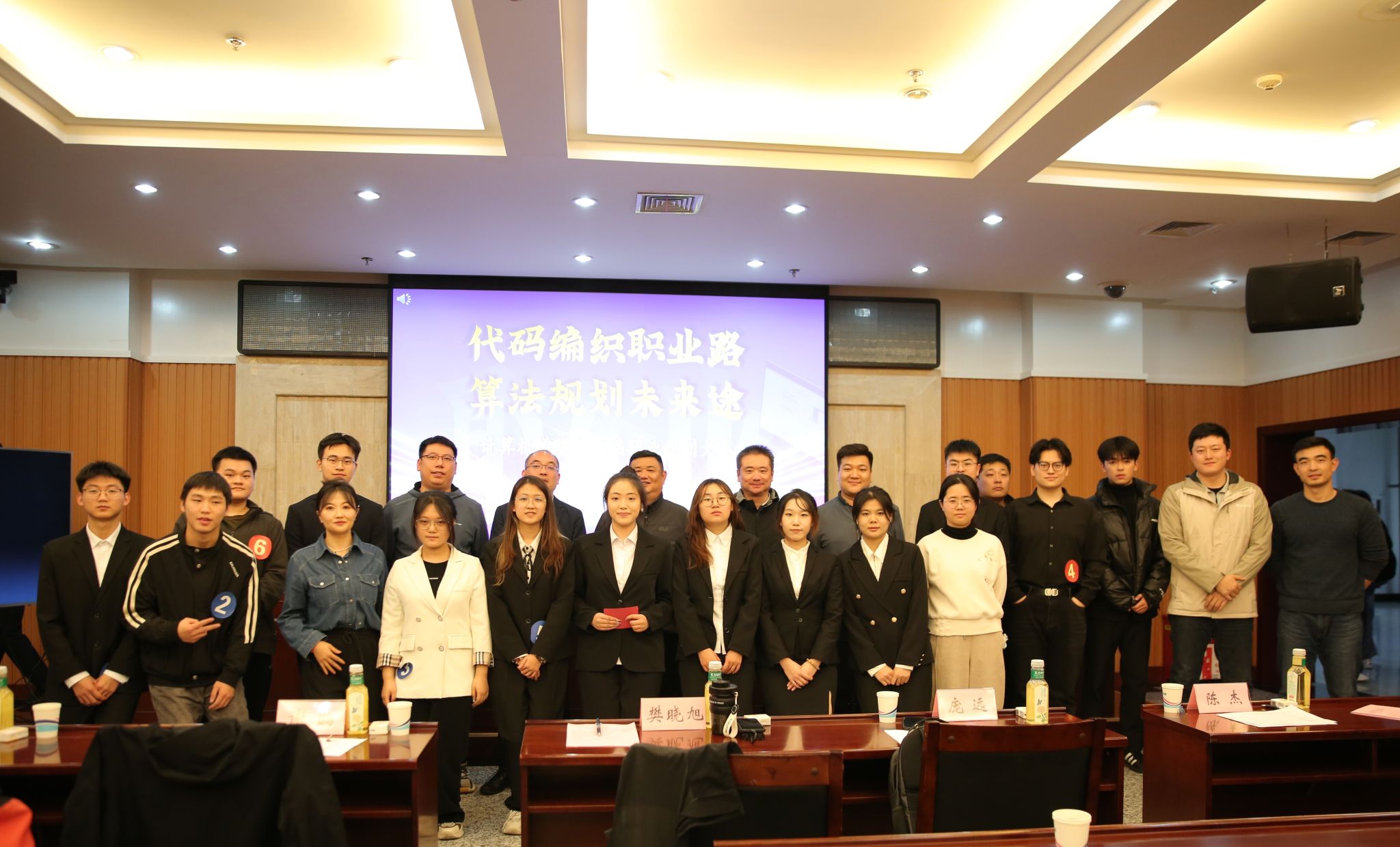为激发学生规划意识、提升职业能力,实现与校赛、省赛全面对接,计算机学院于11月21日19:00在鄠邑校区图书馆第一会议室举办“代码编织职业路·算法规划未来途”第二届大学生职业规划大赛。大赛得到了陕西云文教育科技有限公司的大力支持。中兴通讯marketing和技术方案部&云及核心网市场总监谢鹍、就业创业指导中心副主任樊晓旭、计算机学院党委副书记庞远、就业创业指导中心办公室副主任陈杰、云文教育徐帅老师和学院学工办辅导员老师担任评委。来自本科和硕士阶段的12名选手参赛,100名学生观看了比赛。