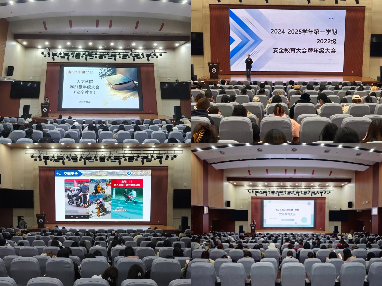 为进一步加强安全管理,增强学生安全意识和防范能力。11月25日至26日,人文学院各年级在鄠邑校区弘石报告厅分别召开安全教育年级大会,会议由各年级辅导员主持。