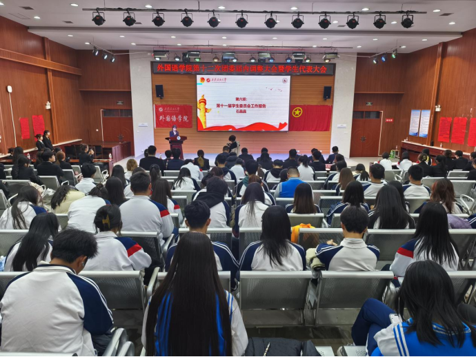 11月28日晚,外国语学院第十二次团委届内调整大会暨学生代表大会在鄠邑校区崇文楼118多功能厅召开。校团委副书记王军策,学院党委副书记邱岭,学院团委书记陈浩出席大会,校学生会和各兄弟院(系)学生会负责人,学院学生代表共计110余人参加。