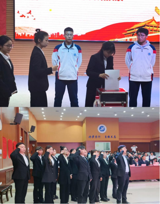 邱岭代表学院党委在讲话中对校团委和校学生会以及各兄弟院(系)学生会给予学院团学工作的大力支持表示衷心的感谢,并充分肯定了这一年来学院团委及学生会的工作成绩,他对全院青年学生提出三点希望:一是坚定信念,树立远大抱负。在奋斗的青春中释放激情、追逐理想,以青春之我、奋斗之我,为中国式现代化铺路架桥,为祖国建设添砖加瓦。充分发挥自身力量,将青春之自我融入到祖国、学校之大我中,坚守家国情怀,爱校荣校,积极参与到团学工作中去,为学校和学院发展蓄力,展青春力量,扬青春旗帜,现青春活力;二是勤奋学习,提高综合素质。团学青年们要自觉秉持校训,不断发扬爱国、奉献、融合、创新的精神。主动学习知识,不断拓展视野,提高综合素质,成为堪当时代大任的中国特色社会主义现代化建设者和接班人; 三是踔厉奋发,勇担强国使命。每一位青年都应该在担当中历练,在尽职中成长,要勇于创新创造,自觉投入到强国建设当中来。