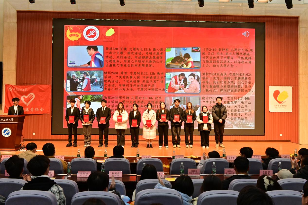 颁奖环节中,王泽文为青年志愿者协会2024年表现突出的“最美志愿者”颁奖。优秀志愿者代表们针对个人志愿服务经历和优秀志愿服务经验进行了交流分享。