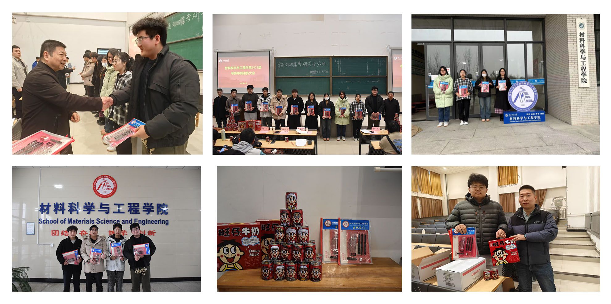 材料科学与工程学院历来高度重视本科生考研升学工作,密切关注考研学子实际需求,多次开展精准帮扶指导,为学生提供全方位的服务和保障,助力学生考研圆梦。此次慰问活动,传递了学院对学生的关怀,拉近了师生之间距离,相信同学们都不忘初心、坚定信念,以更加充足的干劲迎接挑战。祝愿每一位考研学子以梦为马,落笔成诗,得偿所愿,成功上岸!