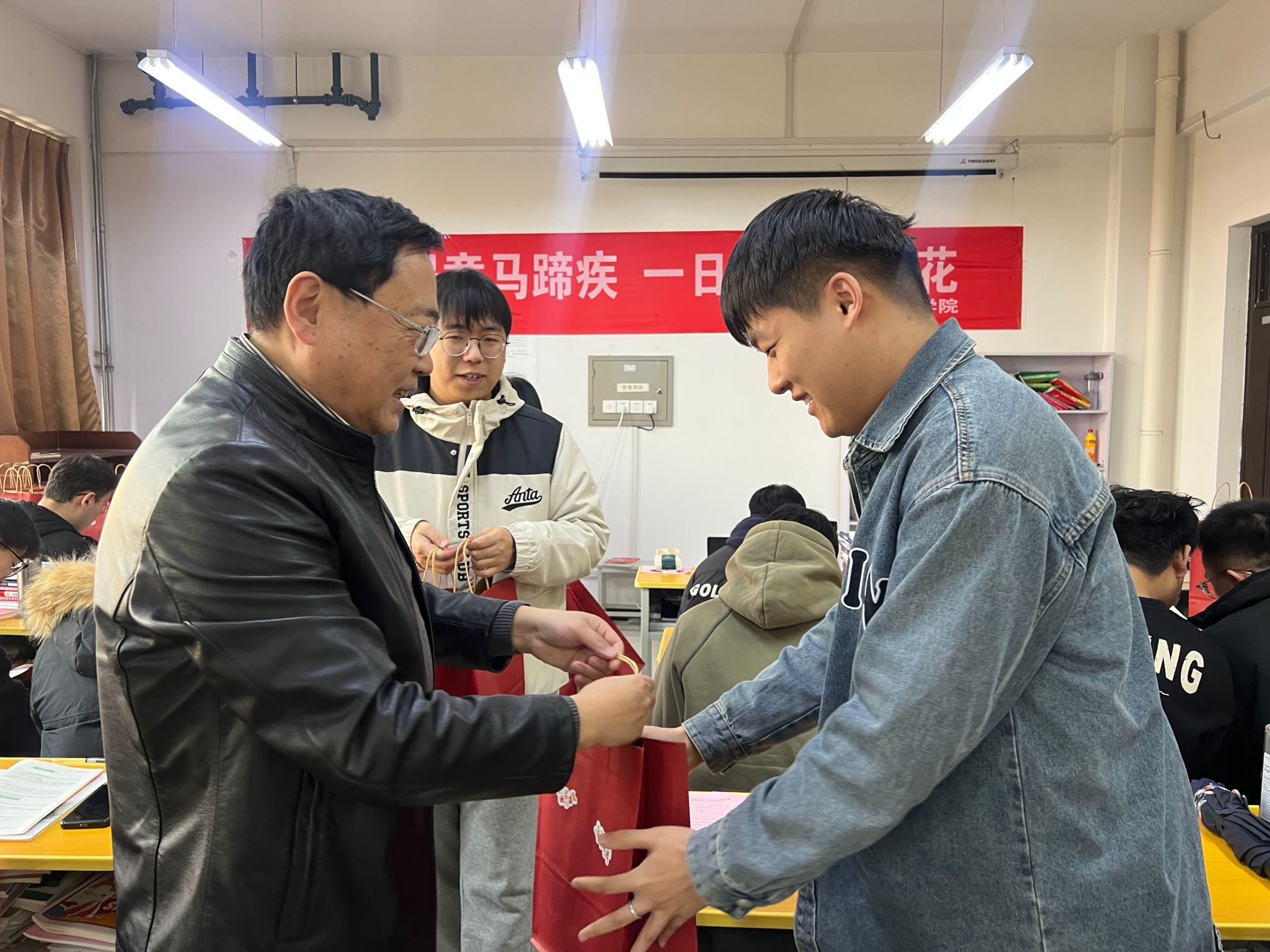 在2025年全国硕士研究生招生考试到来之际,为帮助考研学生坚定考研信心,缓解备考压力,激发前进动力,学院党委书记马行天、2021级辅导员李佩琦于2024年12月16日携暖心考研大礼包走访考研自习室,慰问考研学子。