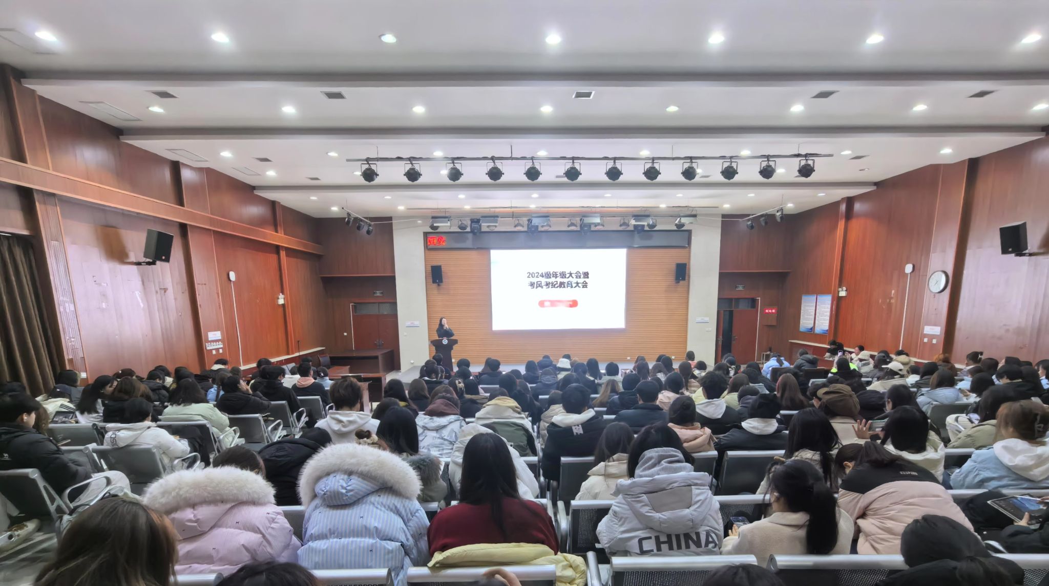 为了加强学院学生日常管理和考风考纪建设,营造公平公正的考试环境,人文学院于12月25日晚在崇文楼118室召开了2024级年级大会暨考风考纪教育大会,会议由2024级辅导员樊煜主持,2024级全体学生参加。