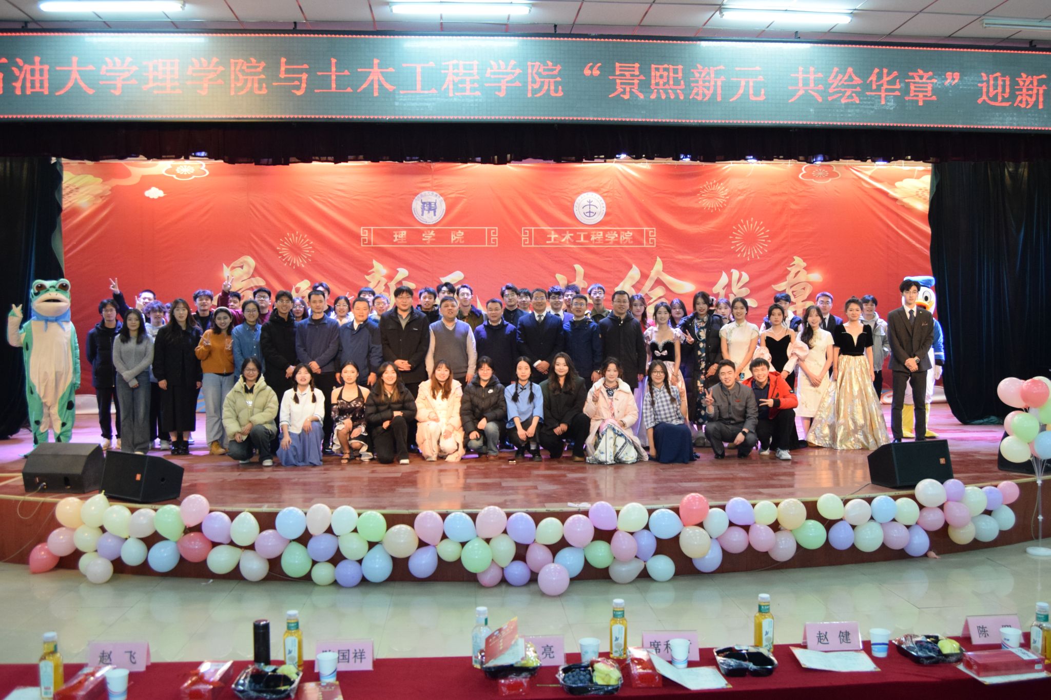 12月28日晚,理学院、土木工程学院在鄠邑校区腾辉大学生活动中心举办“景熙新元 共绘华章”迎新晚会。校党委委员、副校长赵健出席,采购招标处处长陈熙、理学院党政领导席利哲、杨富民、折延宏、陈国祥,土木工程学院党委副书记高亮,理学院、土木工程学院、材料科学与工程学院、新能源学院、体育学院团学指导老师以及校院两级团委学生会学生干部莅临晚会现场,400余名同学现场观看了晚会。