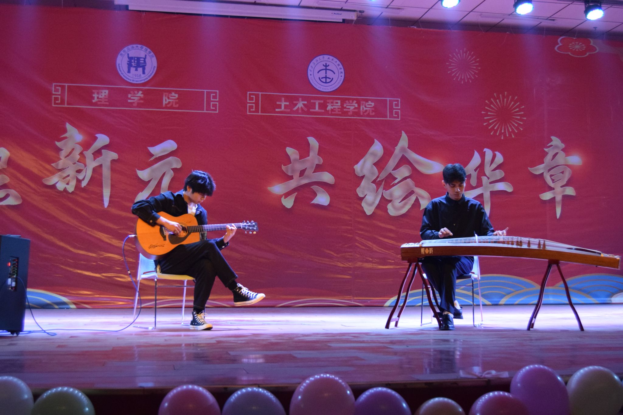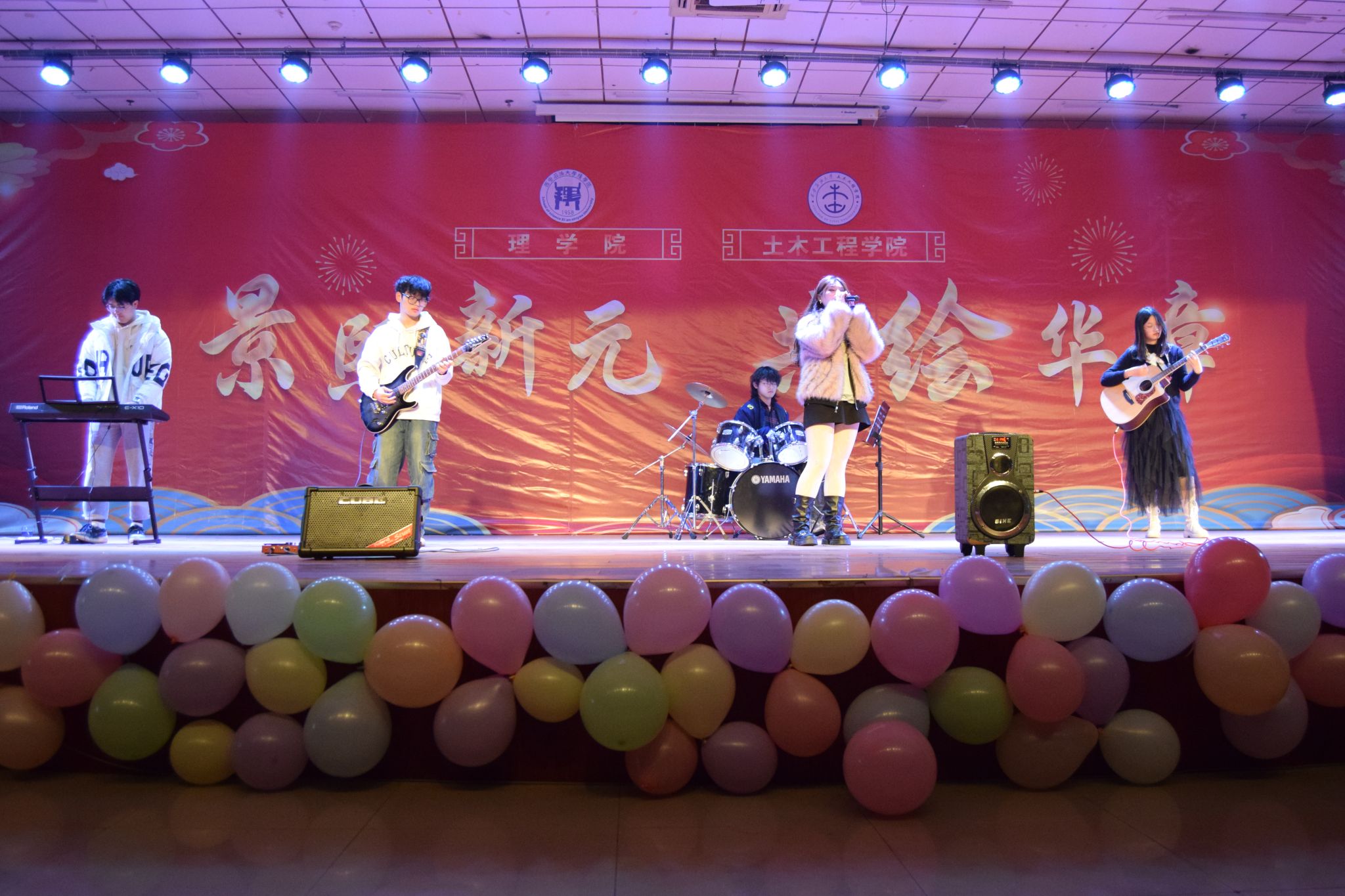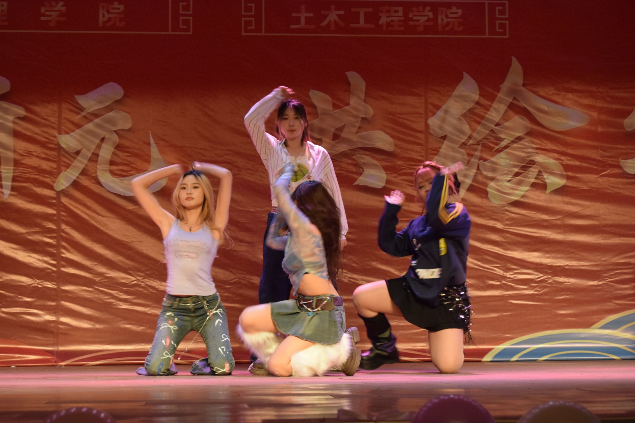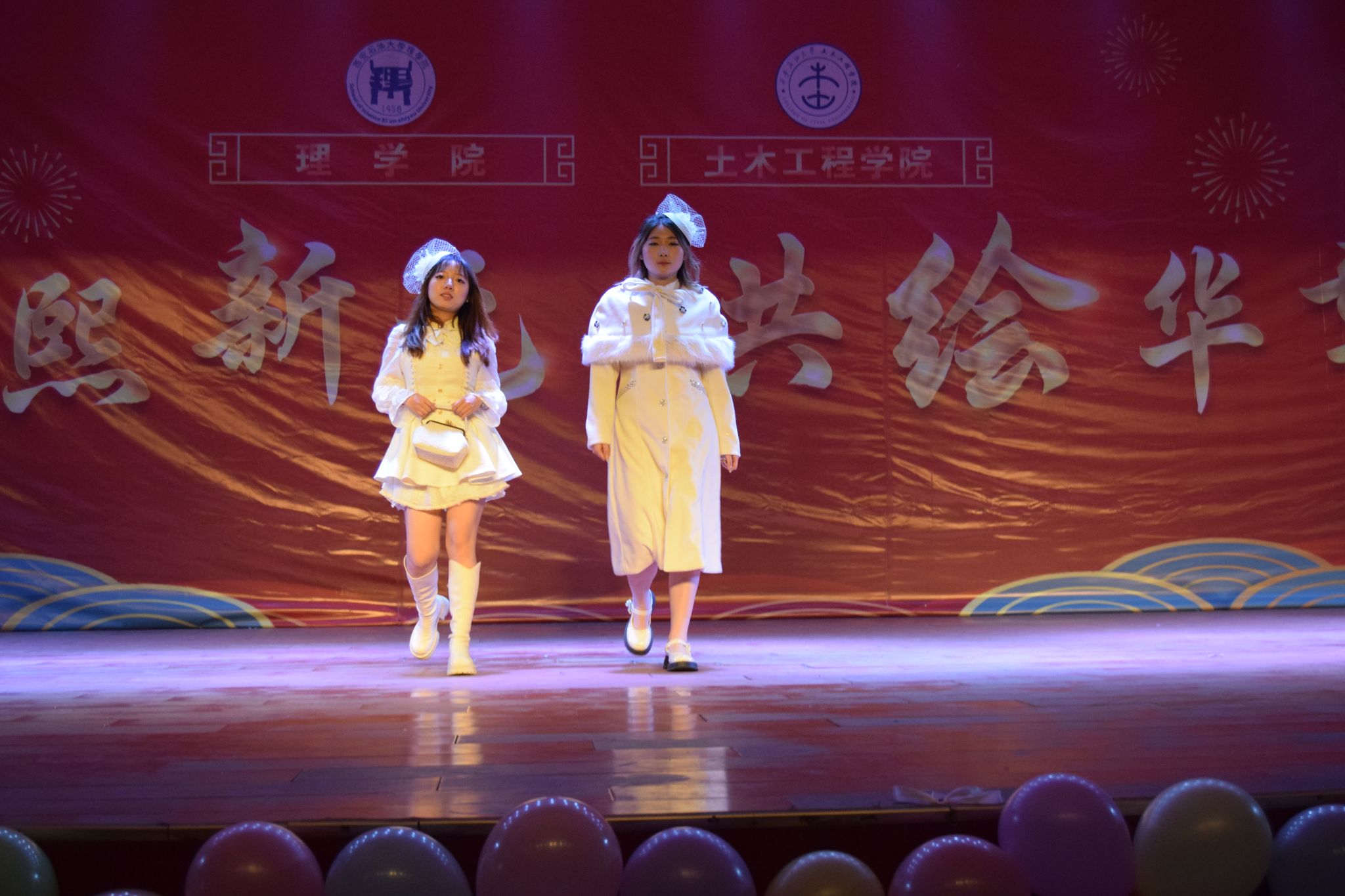 本场晚会分为“燃梦新生”“涌动青春”两个篇章。理学院辅导员李猛弹奏的《琵琶语》作为开场,街舞《whiplash》以动感的节奏和炫酷的舞姿赢得了观众的阵阵掌声,歌曲《于是》《My heart will go on》《就是爱你》深情而富有感染力,小品《非礼勿扰》幽默诙谐,小品《时间都去哪儿了》唤起了大家对日常学习生活时间的珍惜与回忆,敦煌舞、新疆舞和拉丁舞的《舞蹈串烧》将现场气氛推向高潮,展现了同学们青春的活力与激情。进入下篇,歌曲《你还要我怎样》《如果有来生》《走在冷风中》《Jar of love》以深情的歌声打动了每一个同学的心,《穿越古今,衣袂飘飘》通过精彩的走秀展示了古今服饰的演变与魅力,话剧《黑天鹅王子和七个黄金矿工》创意独特笑料不断,现代舞《New dance》再次点燃了现场的热情,土木工程学院辅导员张曼带来的钢琴独奏《这世界那么多人》琴声优美,传递着爱与希望。最后,Flipped!乐队一首《花海》以欢快的旋律和精彩的表演为晚会画上了完美的句号。晚会还穿插了激动人心的抽奖环节,9名幸运观众获得“幸运大礼包”。