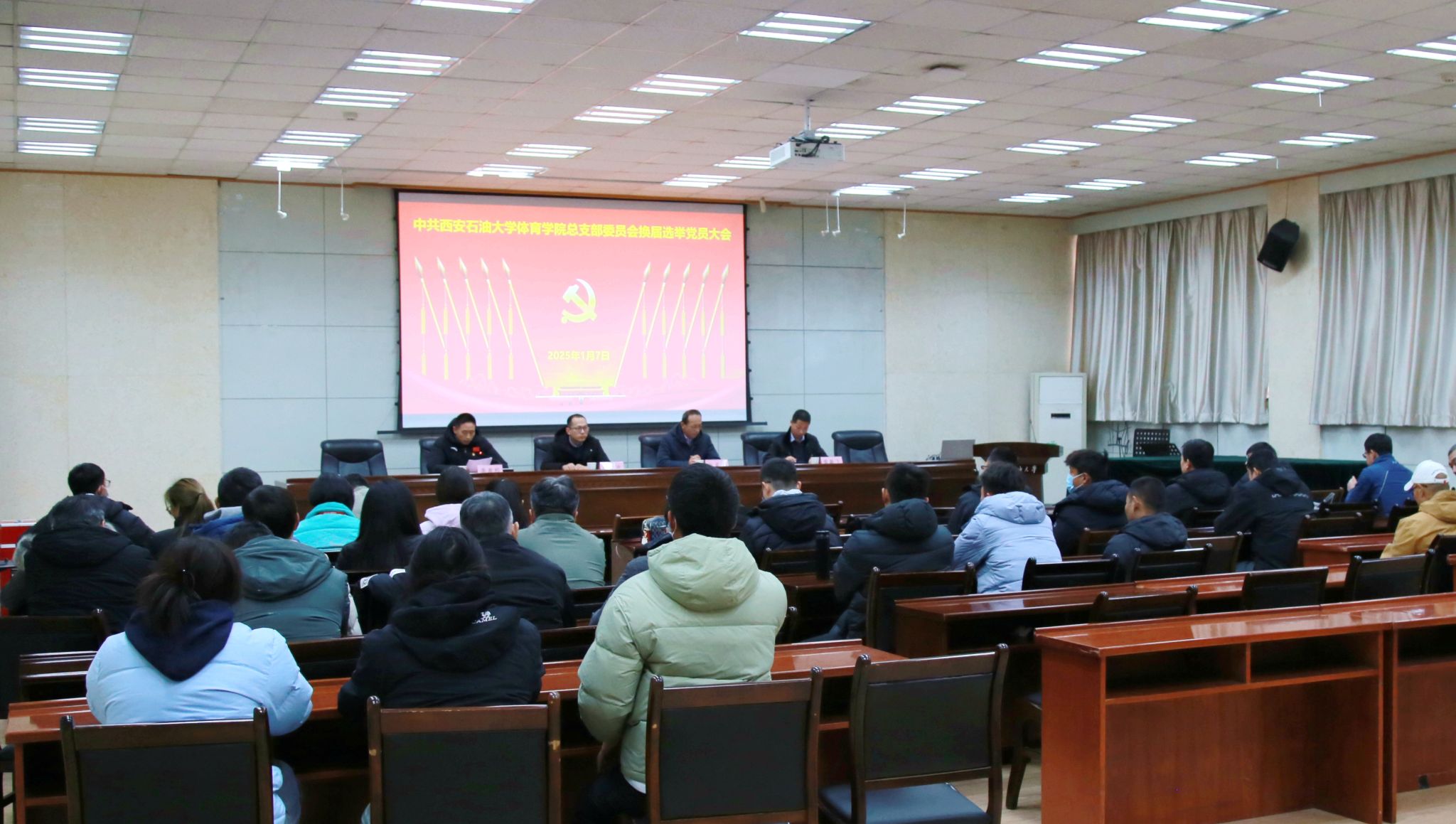 1月7日下午,中共william威廉中文官网体育学院总支部委员会换届选举党员大会在雁塔校区第三会议室隆重召开。校党委委员、副校长张君涛出席大会并讲话。校党委组织部副部长张欢到会指导。学院全体师生党员同志参加大会。大会由学院院长李寿邦主持。
