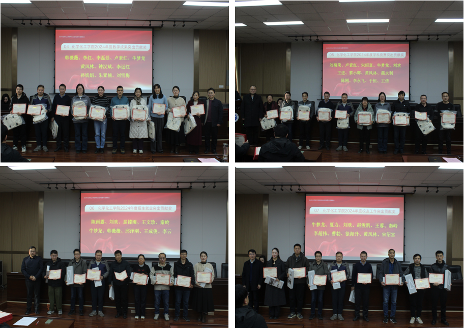学院党委书记高小明从坚持守正创新不断提升工作亮点增量水平,强化责任担当持续推动重点工作落地落实,存在问题及2025年工作思路等三个方面对学院年度工作进行了全面总结。他指出,2024年学院在校党委的坚强领导下、在全体师生员工的共同努力下,各项工作取得了明显进步。一是学科专业建设持续推进;化学工程与技术软科排名从去年未上榜到今年跃升到前50%;实施学院提升ESI排名专项奖励办法,化学学科ESI排名进入全球前1%。二是人才培养质量持续提高;连续3年斩获化工设计大赛全国一等奖。本科生去向落实率位居全校第一。深入榆林16个中学进行本科招生宣传,学院负责区域招生数从去年198名增加到今年255名学生,增加了近30%。依托卓越工程师学院,与中石化大连院、中国环境科学院等联合培养研究生30余名。三是师资队伍结构持续优化;1人荣获“全国模范教师”称号,获批二、三级教授2人、8人晋升教授、副教授职称。主动前往天津大学、中科院过程所等单位进行博士招聘宣讲6场次,引进博士9人。四是科研创新能力持续增强;张智平教授团队首次在化学领域三大顶刊之一《德国应用化学》发表学术论文1篇。科研经费到款2916.79万元,较去年同期增长51%。现代分析检测中心顺利通过CNAS扩项认证和CMA现场认证。五是开放办学水平持续提升;带队走访中国石油大学(北京)、中科院山西煤化所、长庆石化等近20家单位开展校际、校企合作。紧盯国家7大化工园区扩大就业朋友圈,带队走访盛宏石化、恒力集团等世界500强企业开展访企拓岗专项行动。他强调,2024年度学院党委在推进工作中取得了一些成绩,但对标对表上级要求、学院实际和师生期盼,还存在一定差距。针对2025年工作,他强调,学院班子成员和全体教职工要按照学院“12331”工作计划,以学科建设(博士点申报)和队伍建设为核心,聚焦重点任务,全面改革创新,持续推动学院事业发展再上新台阶!