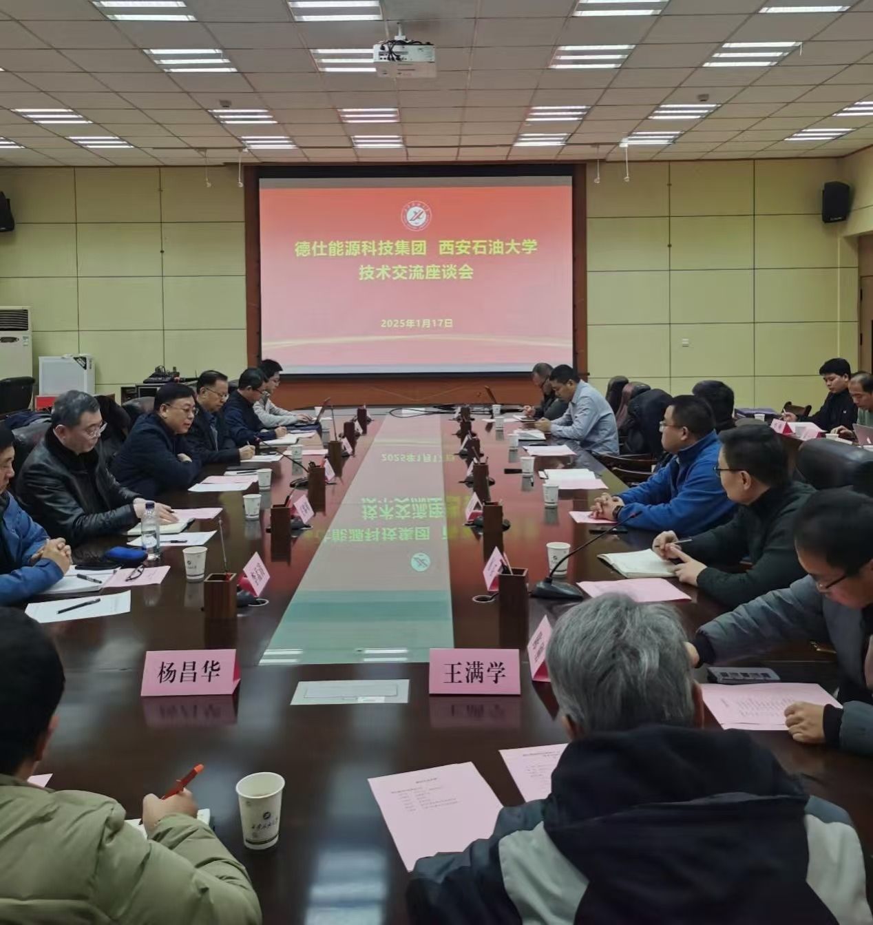 1月17日下午,德仕能源科技集团党委书记郭玉玺一行6人来校开展技术对接交流活动。会议在雁塔校区会议中心第一会议室召开,科研处副处长屈乐主持会议。