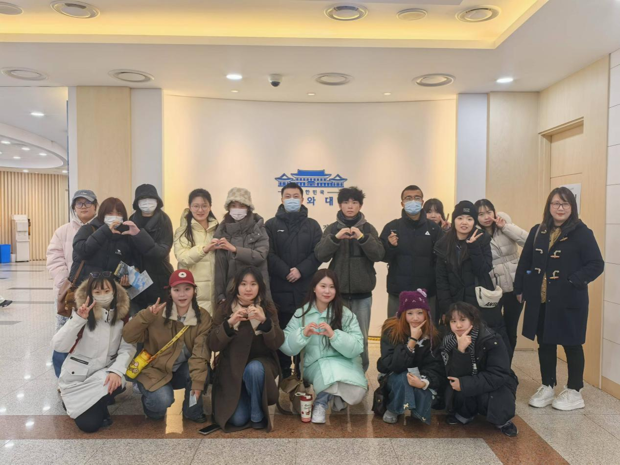 作为此次访学活动的特色之一,韩国淑明女大还精心组织组织了一系列实践活动。1月15日,参访团在韩国总统历史官邸青瓦台参观体验,现场参观活动帮助同学们直观地了解了韩国政坛历史沿革和一系列相关知识。