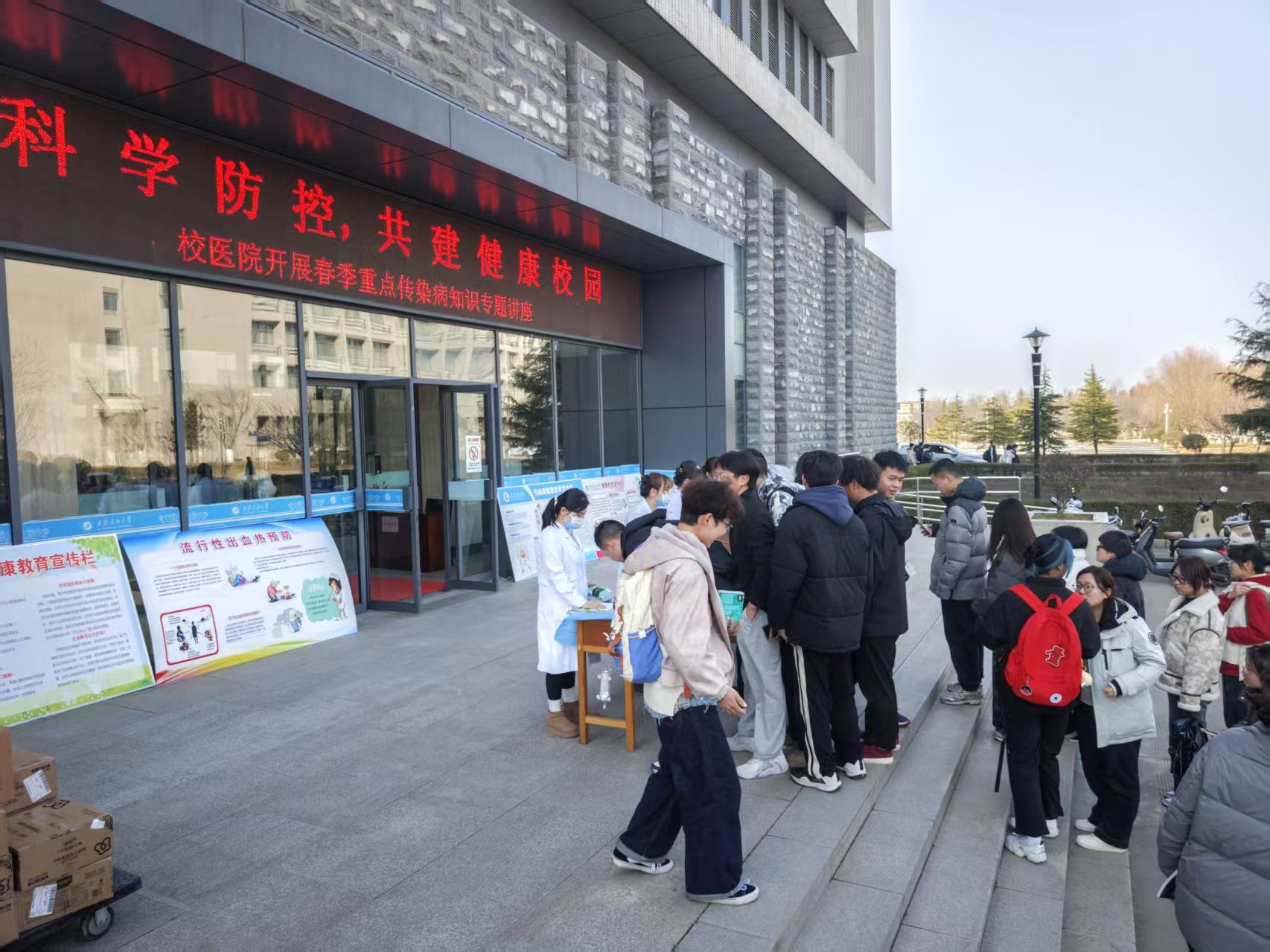 为切实做好春季传染病防控工作,增强师生对传染病的防范意识,2月25日、28日,校医院分别在雁塔校区第三会议室和鄠邑校区弘石报告厅开展了校园春季重点传染病讲座和宣传活动,两校区师生及家属500余人参加。