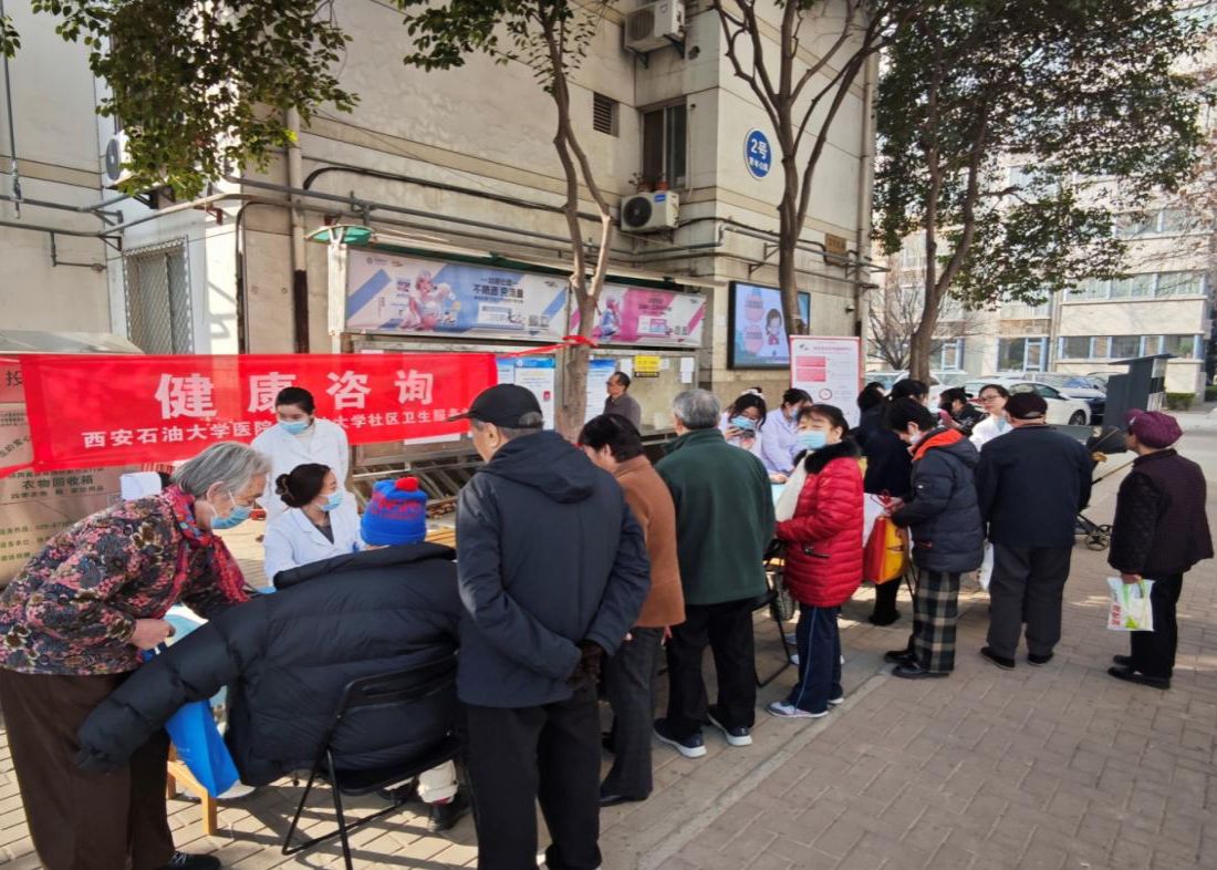 为增强师生、社区居民的健康意识,推广传统中医养生理念,普及医康结合知识,2025年2月27日下午,校医院联合后勤社区、离退休工作处、西安圣宏养老服务中心,在学校南北家属区共同举办了中医健康咨询和医康养结合宣传活动。