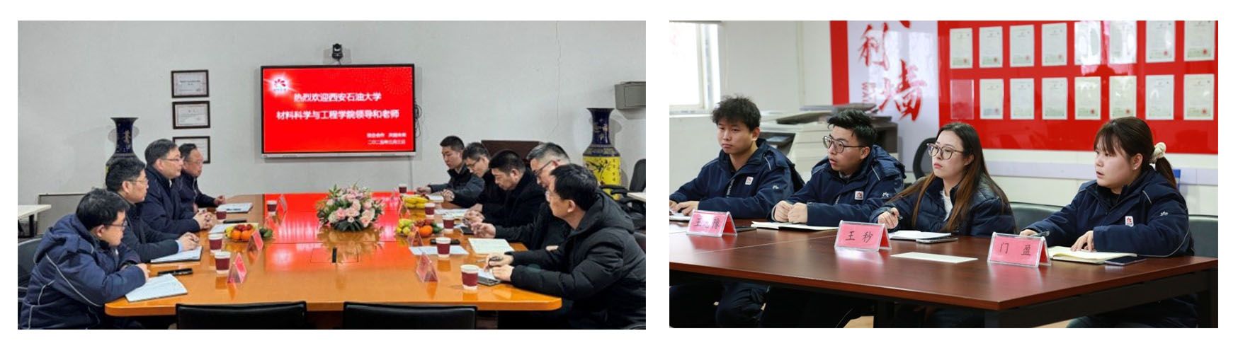 为深化产学研融合,推动校企协同育人,3月3日下午,材料科学与工程学院党委书记耿岭带队,党委副书记屈敏佳、焊接技术与工程系主任董会、金属材料系教师沈思聪、辅导员周鑫一行赴陕西延长石油金石钻采设备有限公司(以下简称“公司”)开展调研交流。公司董事长李际耀、办公室主任刘晓军、技术质量总监邵金海、生产计划处二分厂厂长王树红以及优秀校友代表参与座谈。座谈会由李际耀主持。