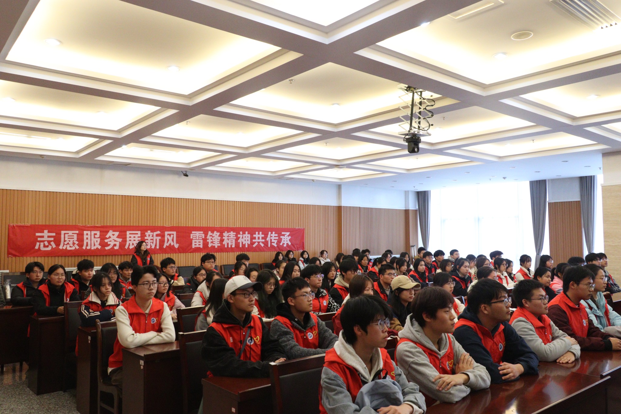 3月5日下午,在第62个“学雷锋纪念日”和第26个“中国青年志愿者服务日”来临之际,学校在鄠邑校区图书馆第一会议室举办弘扬雷锋精神、传播志愿薪火,贡献青春力量、争做时代先锋2025年“学雷锋志愿服务月”活动启动仪式,校团委全体工作人员、各院(系)团委(团总支)书记、青年教工团支部书记、预科班团支部负责人、第27届研究生支教团、青年志愿者协会志愿者代表共计200余人参加了本次活动。