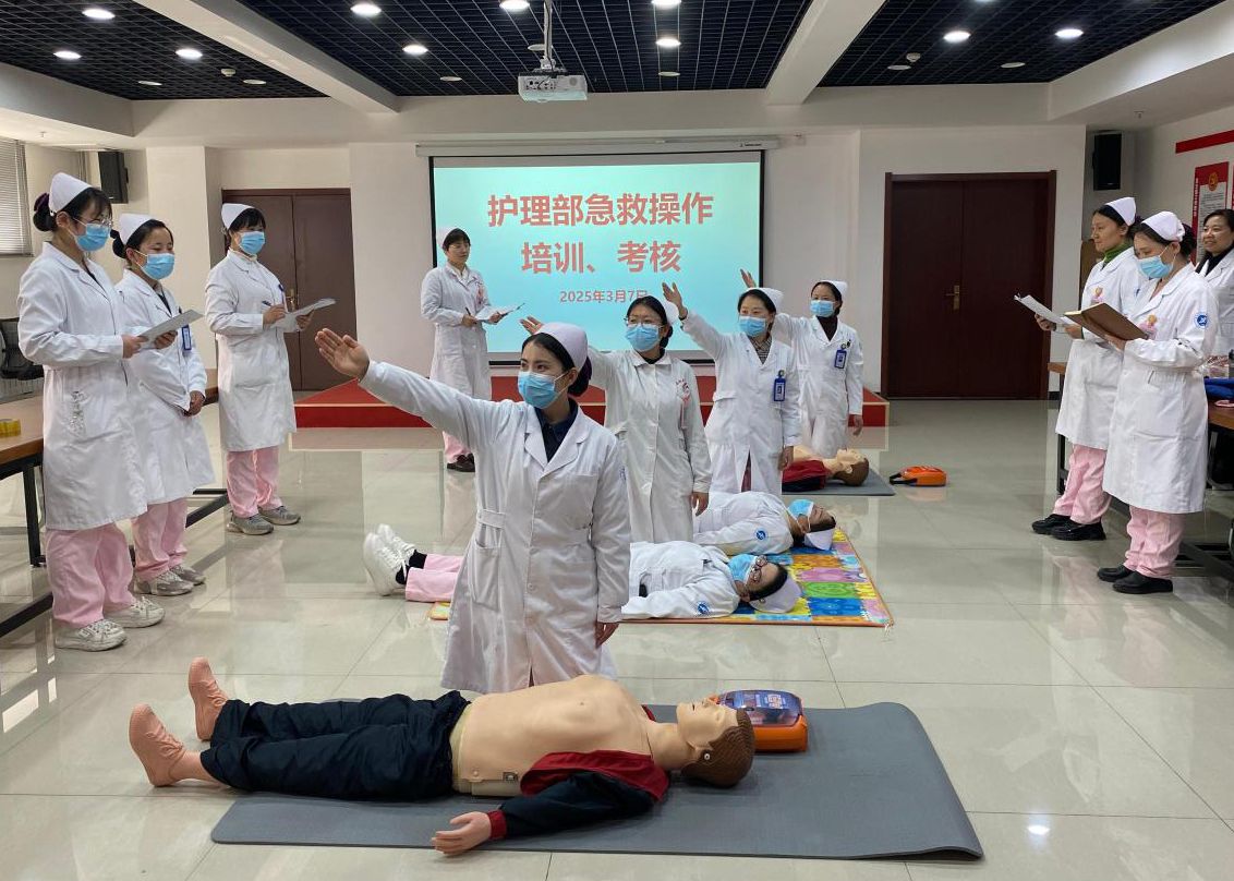 为进一步提升校医院医护人员急救水平,强化校园应急救护能力,2025年3月7日校医院护理部组织开展了一场极具专业性与实用性的急救技能培训,此次培训内容丰富、实用性强,校医院医护人员积极参与,为校园安全注入了强劲动力。