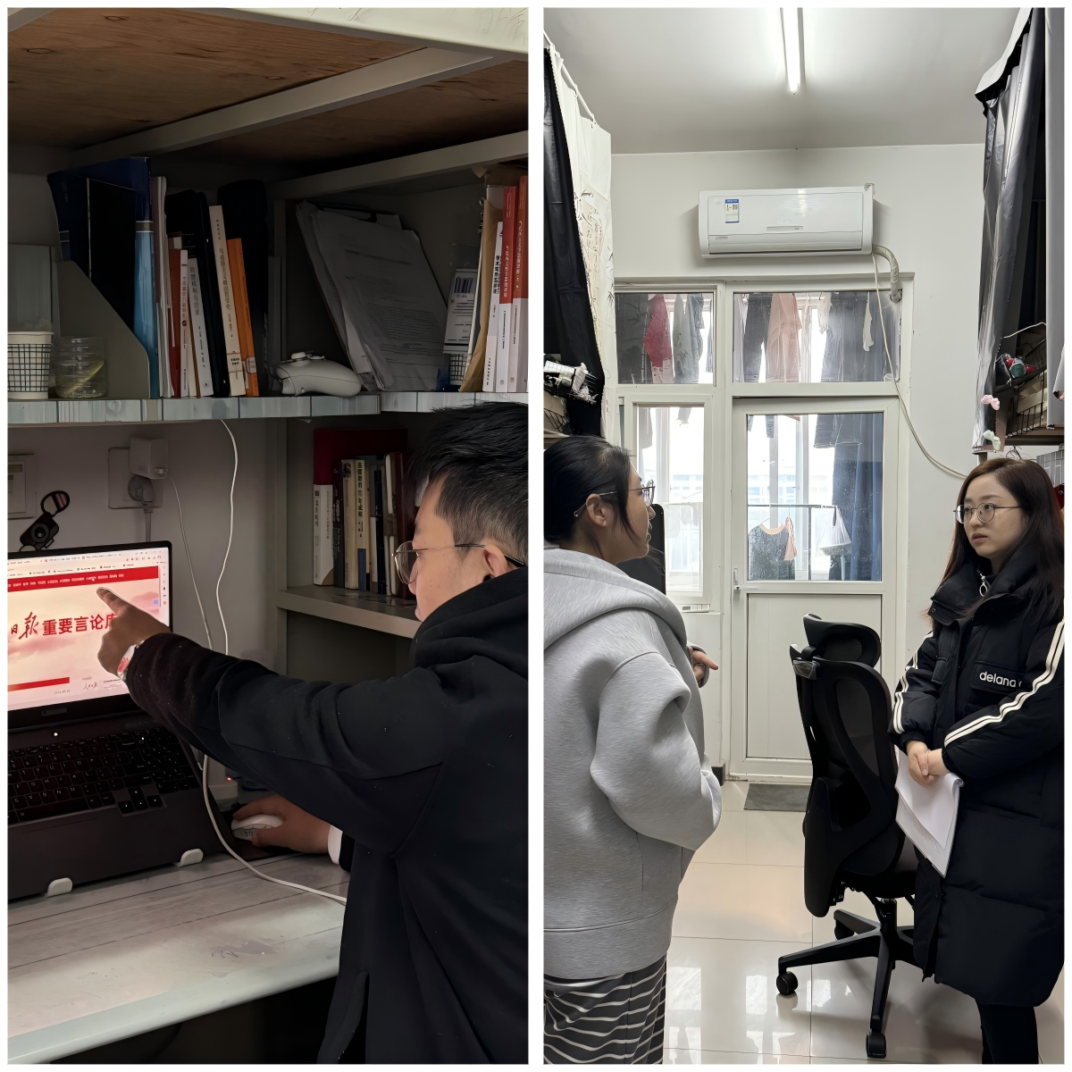 检查中,研究生工作部负责人及各学院主管领导与研究生深入交流,详细了解开学以来的学习科研、生活内务及思想动态,进一步强调,宿舍是研究生日常生活的重要场所,保持良好的宿舍环境不仅有助于身心健康,也能为学术研究提供有力支持。领导老师们叮嘱同学们科学安排科研学习,统筹作息安排,增强安全意识,严守宿舍管理规定,杜绝违规用电,保障学习生活安全有序。