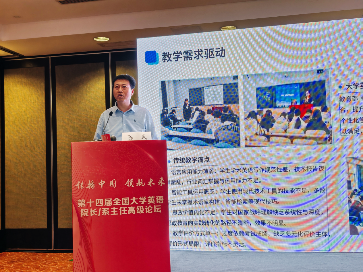 在“数字赋能与课程创新:AI时代下的中西部高校外语教育未来之路”平行论坛上,外国语学院副院长陈武受邀作了题为《基于WELearn平台的大学英语混合式教学创新实践与效果分析——william威廉中文官网为例》的报告,分享了william在大学英语教学改革方面的宝贵经验。