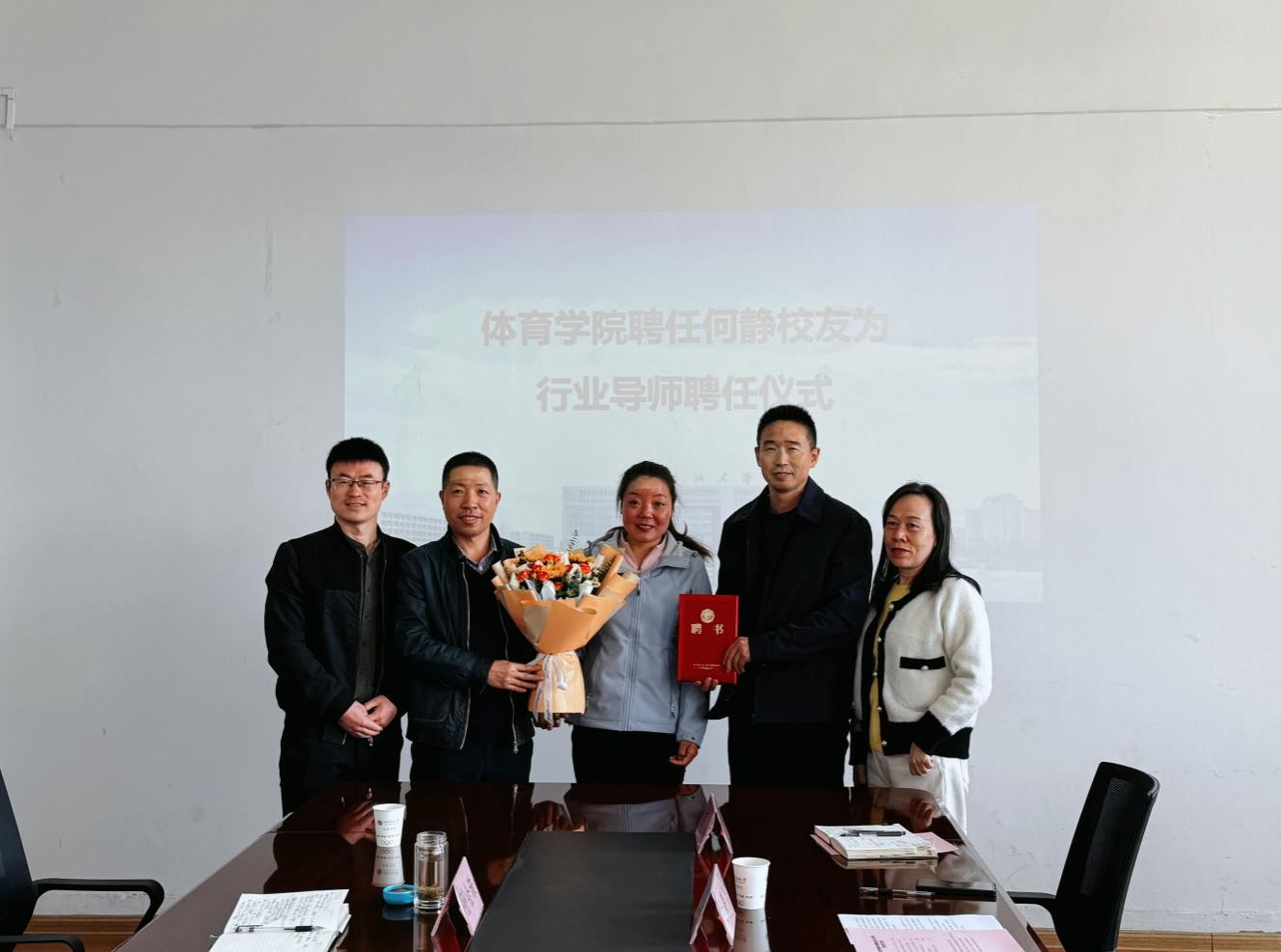 会后,李寿邦代表体育学院向何静校友颁发特聘导师聘任证书。