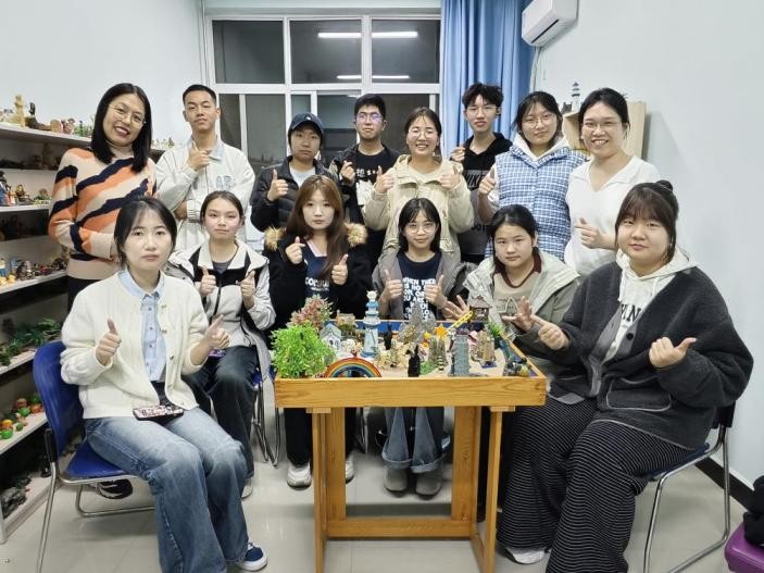 工作研讨后,团队成员齐聚崇文楼 447(沙盘创作室),在老师的带领下,进行了团体沙盘活动。成员们积极参与创作和体验,在活动中加深了理解,增进了沟通,团队更加向心凝聚。