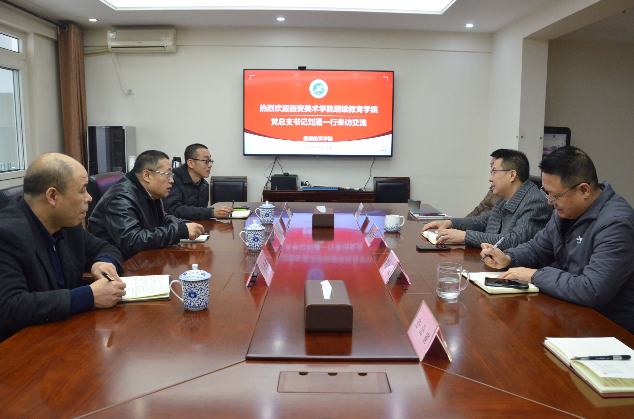 3月18日上午,西安美术学院继续教育学院党总支书记刘通一行3人来william继续教育学院调研交流继续教育工作。院长林红先主持座谈会,副院长刘小波及相关科室负责人参会。