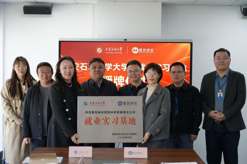 为进一步深化校企合作与人才培养,扎实推进学院学科与专业建设,加强校外就业实习基地建设,3月20日,土木工程学院党委书记贾莉娜、副书记高亮、副院长代建波、辅导员张曼及毕业生代表一行11人赴陕西盟创纳米新型材料有限责任公司,开展访企拓岗促就业活动,双方签订了就业实习基地协议书,并为土木工程学院就业实习基地共同揭牌。