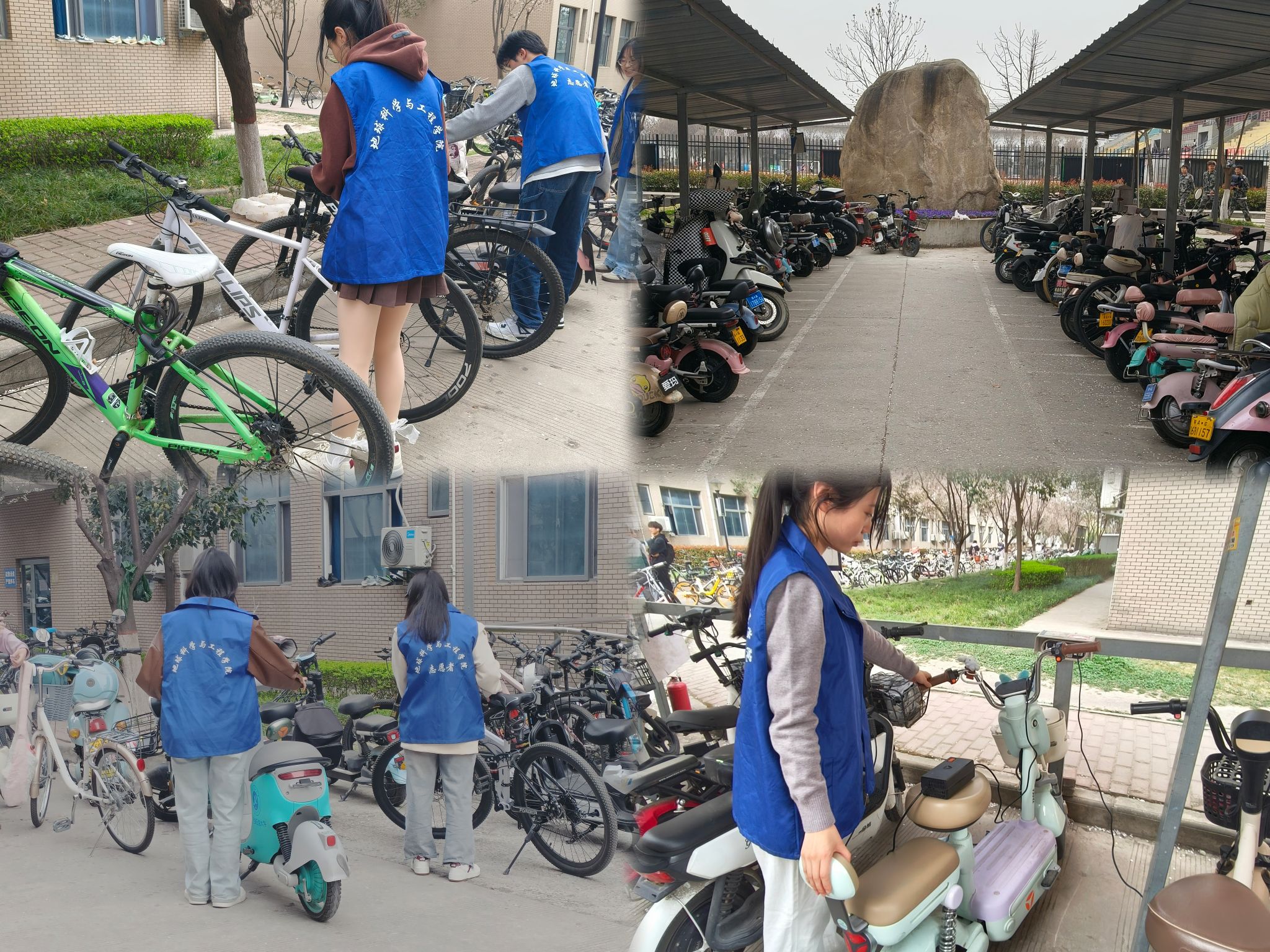 3月26日,学院以"服务人民、助人为乐"的雷锋精神为指引,组织青年志愿者对校园内各电动车、自行车停放点开展系统巡查,重点对随意停放、占道阻碍的车辆进行规范整理。经过志愿者们的共同努力,累计规范整理车辆200余辆,覆盖教学楼、宿舍区等5个重点区域,校园车辆停放秩序得到显著改善。
