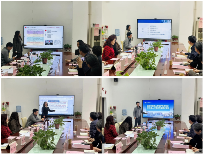 随后,温玉霞院长邀请四个专业的教师团队负责人分享本科人才培养方案修订经验。俄语专业、哈萨克语专业、捷克语专业,以及俄语+法学联合双学位项目的负责人分别介绍了人才培养方案的制订过程,重点阐述了各自专业的特色与创新举措。