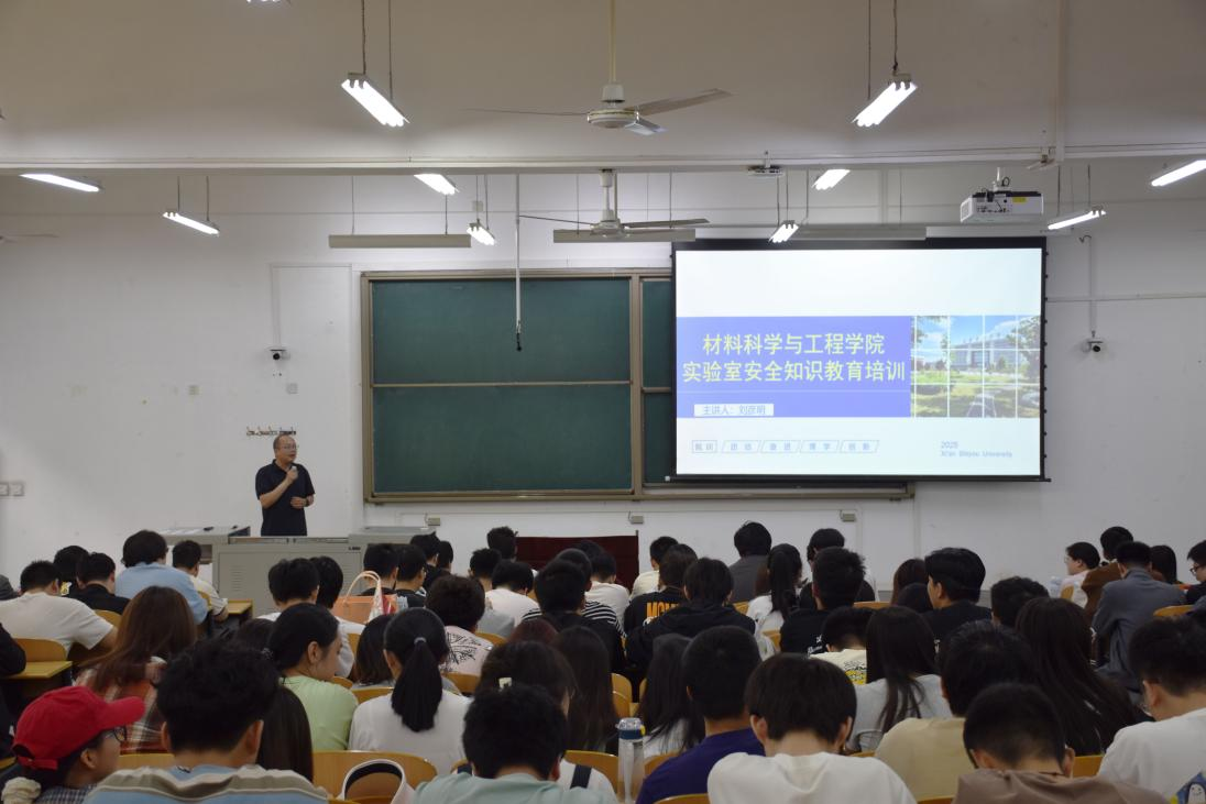 根据《陕西省教育厅办公室关于做好2025年度高等学校实验室安全工作的通知》(陕教技办〔2025〕3号)精神,为进一步贯彻落实《william威廉中文官网2025年安全稳定专项行动月活动方案》文件要求,提高学生安全意识,筑牢校园安全防线,切实保障学校正常教育教学秩序和师生生命财产安全,材料科学与工程学院于4月16日在鄠邑校区博思楼B114举办了2025年度实验室安全知识培训讲座。本次培训由学院实验教学中心主任刘彦明担任主讲,学院2021级和2022级全体本科生共300余人参加培训会。培训会由学院学生工作办公室副主任赵飞主持。