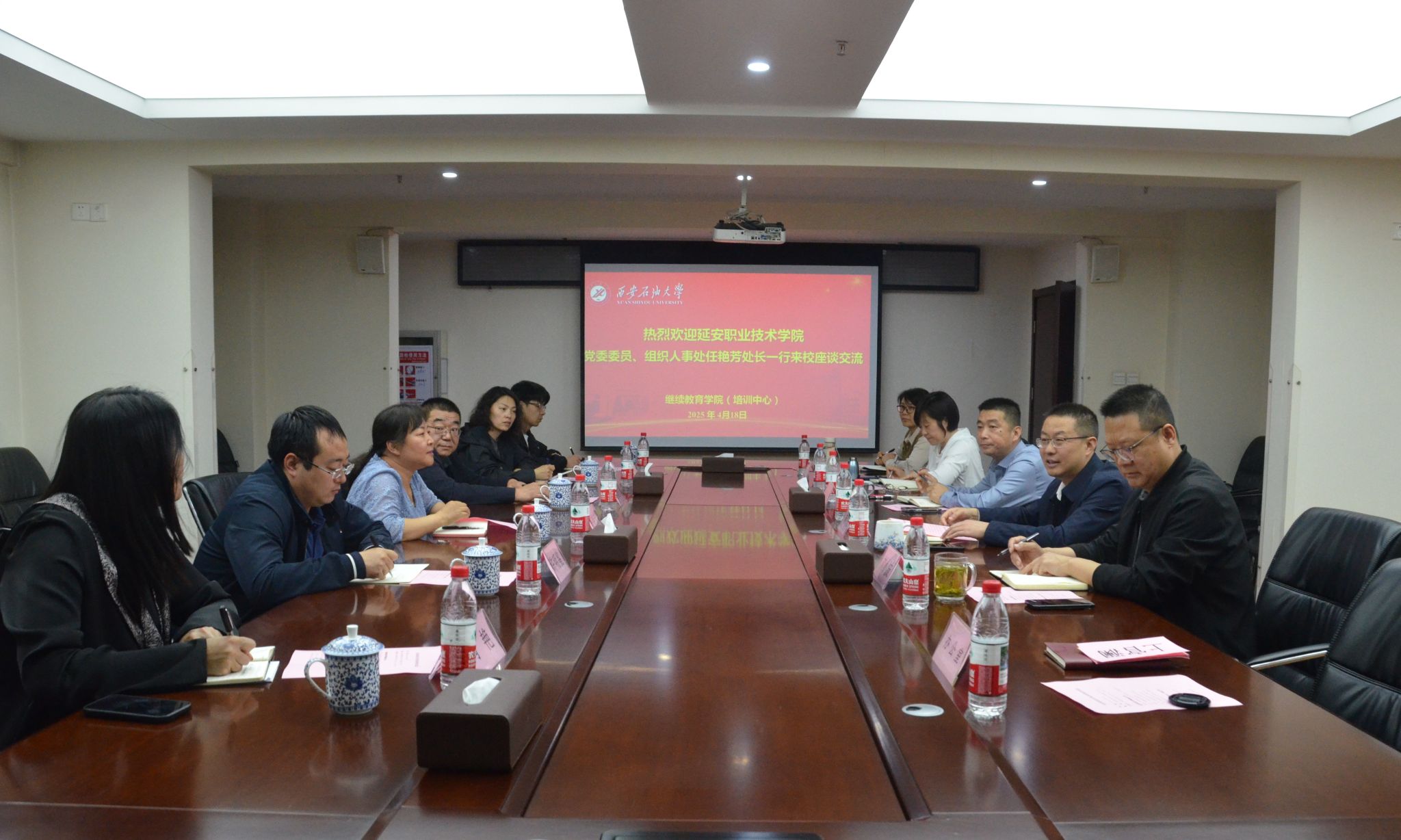 为共同推动继续教育事业发展,加强校际间的合作与交流,4月18日下午,延安职业技术学院党委委员、组织人事处处长(统战部部长)任艳芳、继续教育学院院长惠延东等一行6人来william继续教育学院(培训中心)座谈交流,就学历教育、培训教育、同等学力申硕等方面进行了深入的交流。