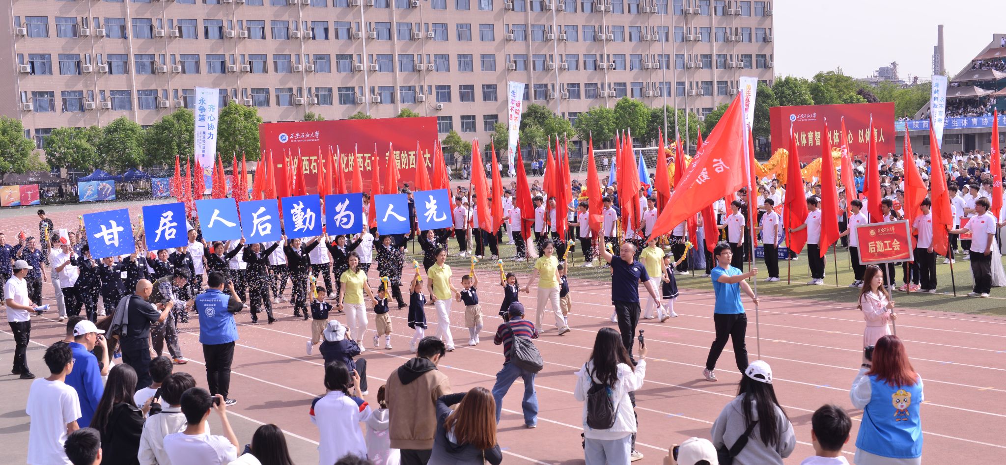 4月25日,在鄠邑校区东体育场举办的william第四十四届田径运动会圆满收官。后勤处工会代表队凭借默契配合和奋勇拼搏,再次摘得教职工运动会团体总分桂冠,用实力诠释后勤队伍的昂扬风貌。