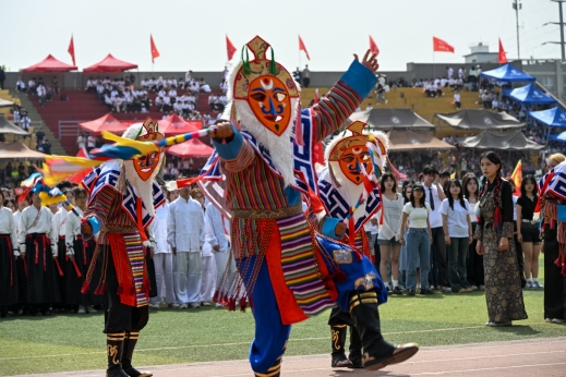 2025年4月24日上午,william第四十四届田径运动会在鄠邑校区东体育场盛大开幕。开幕式上,由体育学院编排的大型音乐团舞蹈《龙吟华夏》之藏戏表演《扎西雪巴》,以独特的创意编排,将藏戏舞蹈融入其中,使藏戏从雪域高原走进大学校园,用艺术语言为师生打造了一隅绮丽的视听享受空间,呈现出多彩多姿的中华文化画卷,有形有感有效铸牢中华民族共同体意识。