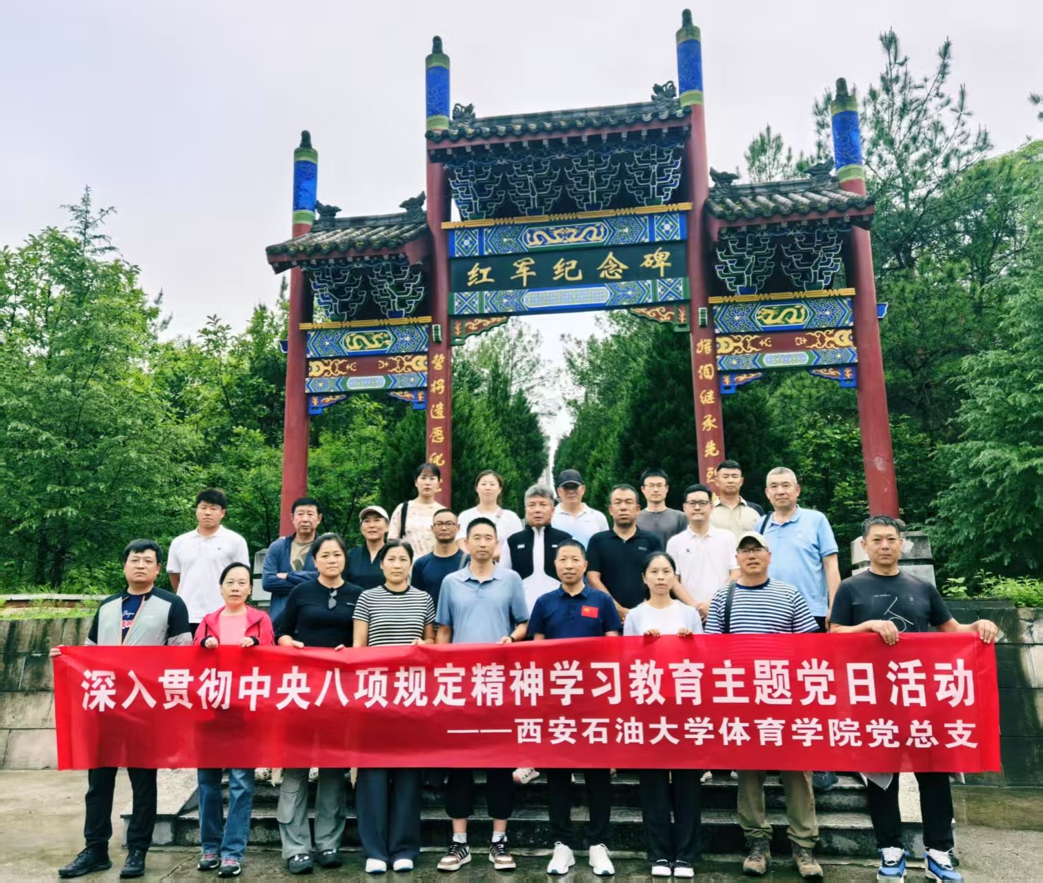 为进一步开展深入贯彻中央八项规定精神学习教育,巩固深化主题教育和党纪学习教育成果,提高党员政治觉悟,加强党员作风建设,深化爱国主义教育。6月7日,体育学院党总支组织全体教职工党员赴石泉县革命纪念园开展“赓续红色血脉 恪守八项规定”主题党日活动,以庄严仪式向革命先烈致以最深切的缅怀。