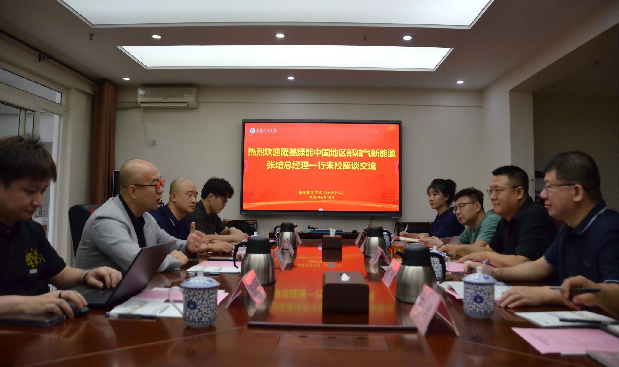 6月18日上午,隆基绿能中国地区部油气新能源事业部总经理张培一行4人来william继续教育学院座谈交流,新能源学院副院长张明,继续教育学院副院长刘小波及相关人员参加座谈。