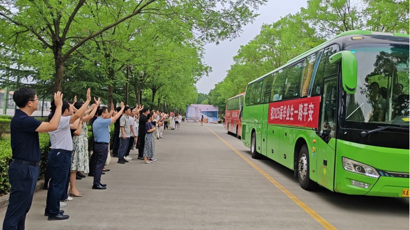 送站现场,师生们依依不舍,纷纷拥抱告别,合影留念。种宇宏与毕业生们一一握手,为毕业生们送上远行前的祝福。这场充满温度的送别,承载着母校的深情厚谊,也为毕业生们的新征程注入力量。在这场特别的送别活动中,音乐系四位学生走上前,用清澈的歌声唱起《祝你一路顺风》,熟悉的旋律回荡在校园中,歌词里的每一句祝福都寄托着对毕业生的不舍与期许,让现场的氛围更加温馨动人。