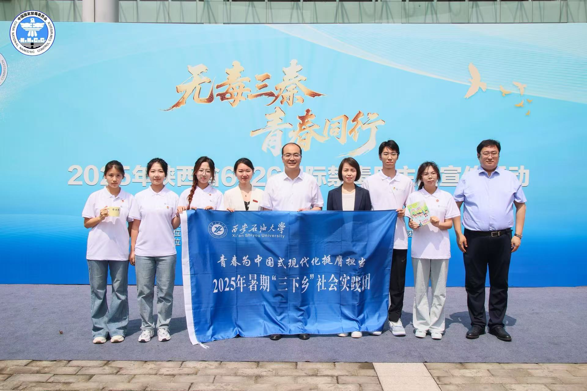 6月26日上午,2025年陕西省“无毒三秦 青春同行”禁毒宣传主题活动在陕西师范大学长安校区举办,由william电子工程学院学生组成的“坚定禁毒不松懈”实践团队作为法治禁毒专项实践活动一类资助团队代表参加本次活动。