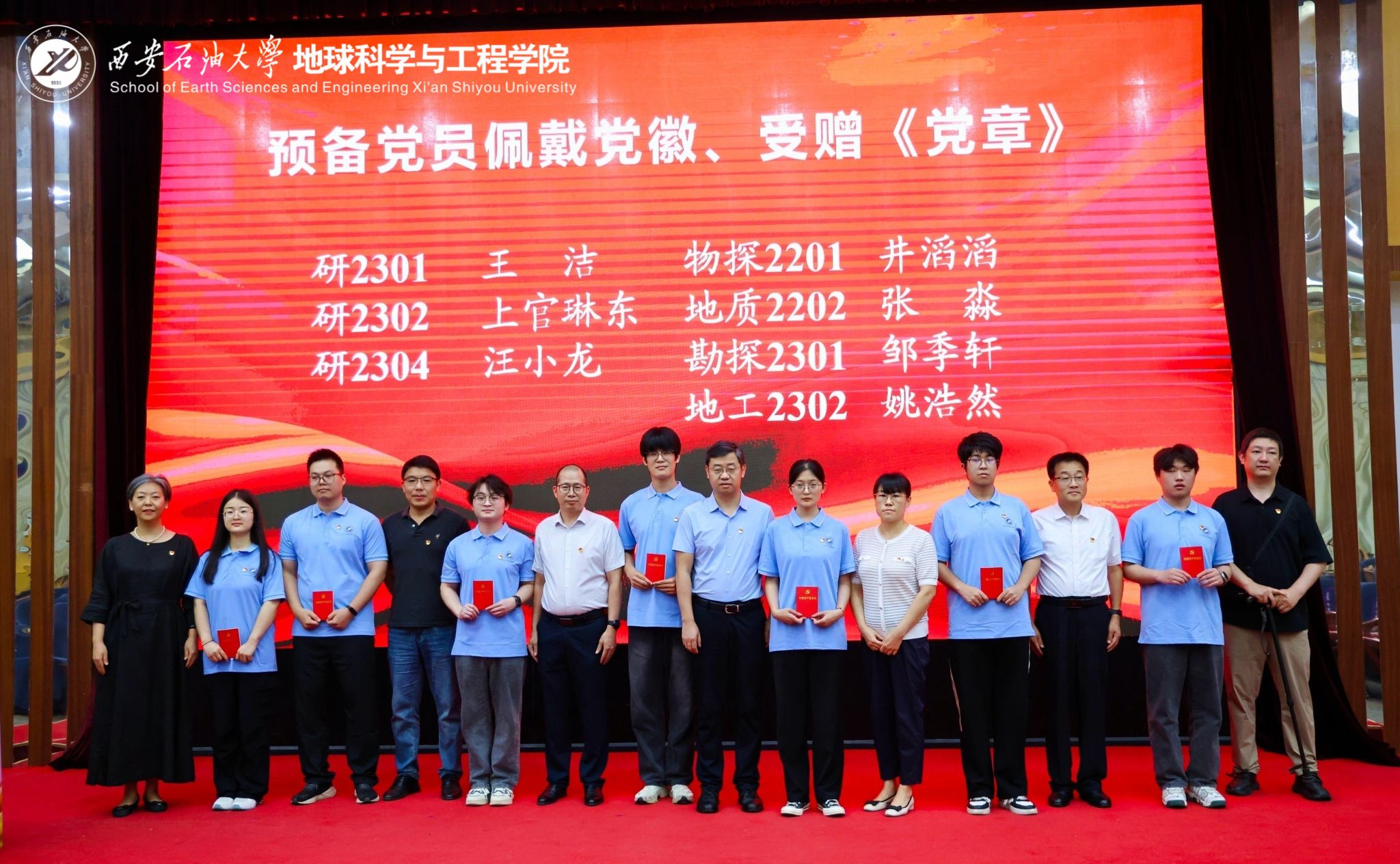 庄严仪式强信念,初心如磐担使命。学院党委副书记王莹宣读预备党员名单。在高黎同志的领誓下,新党员面向党旗庄严宣誓,老党员重温入党誓词。铿锵誓言响彻会场,表达了学院党员的赤诚信念。会场非党员师生共同肃立,观礼见证。王进富同志同学院各党支部在教学科研和管理服务一线工作多年、党龄较长的党员代表,为预备党员代表佩戴党徽并赠送党章,激励他们牢记党员身份,践行初心使命。