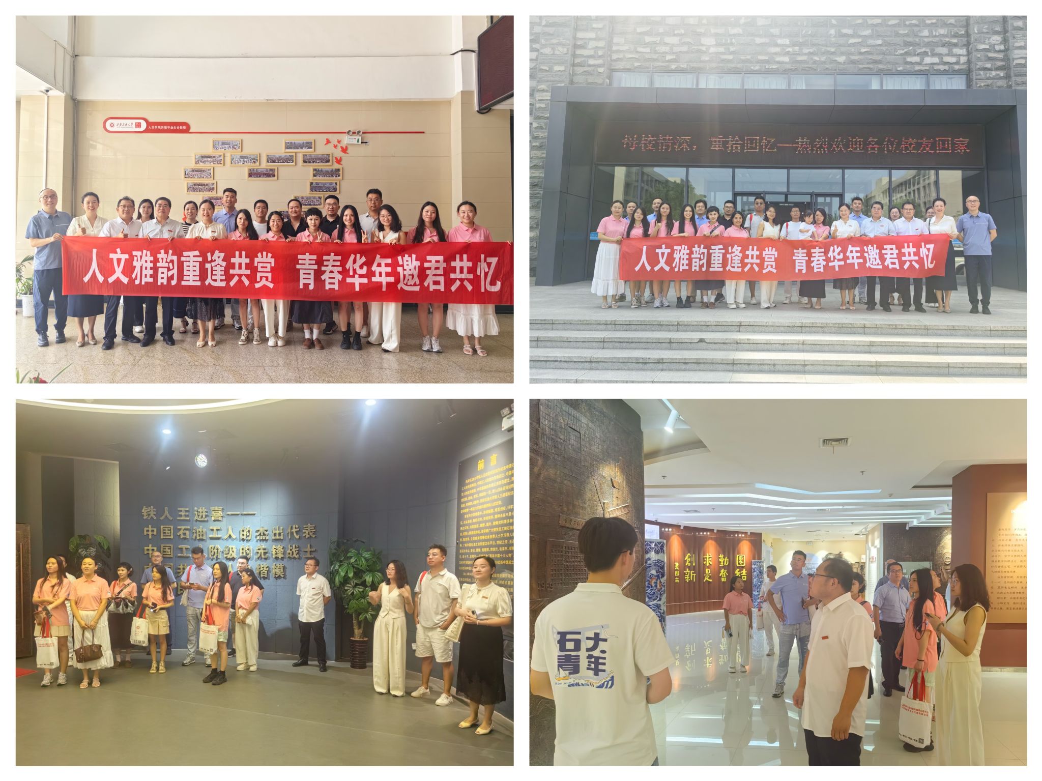 参观鄠邑校区及两馆。下午14:00,在学院领导班子和老师的陪同下,校友们参观了铁人纪念馆和校史馆。在铁人馆内,校友们通过珍贵影像与实物老照片,重温“铁人精神”的深刻内涵。校史馆中,一幅幅老照片、一件件历史文物,诉说着学校七十多年来的奋斗历程,也让校友们回到了那段曾经在william威廉中文官网“刻苦奋斗、追求卓越”的岁月。参观结束后,校友们分别在图书馆前和崇文楼一楼毕业生照片墙前合影留念。诸多校友在照片墙前驻足良久,找寻并分享自己的那段青春足迹。