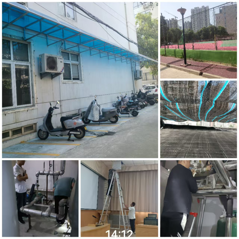 在环境治理方面,修补了明德校区篮球场、网球场墙围,裁减了校区影响通行和安全的绿植树木,建成了学员和职工电动车车棚,安装了餐厅顶楼防晒网,维修了和更换了锅炉房、空凋、厨房制冷设备、供电设备等设施设备50余处。
