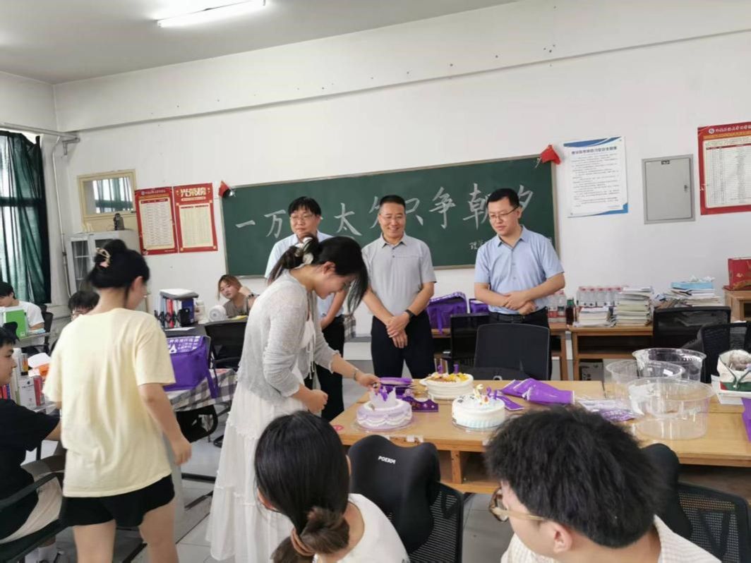 7月23日上午,理学院党政领导席利哲、折延宏、杨富民、刘帅、马儇龙,教师代表冯德全、和万霖一行前往鄠邑校区,先后深入考研自习室、光电学科竞赛实验室和数学建模辅导自习室开展了慰问活动,为暑期留校备考备赛的学生和辅导老师送去清凉与关怀。在考研自习室,学院为过生日的三位同学钟传烺、曹梦婷、虞茗荃准备了生日惊喜,为同学们发放了西瓜、矿泉水等降暑慰问品,并送上了诚挚的暖心祝福。