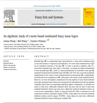 发表在Fuzzy Sets and System的论文“An algebraic study of t-norm based residuated fuzzy tense logics”主要研究了基于三角模的剩余模糊时态逻辑的代数理论,理学院王军涛副教授为论文的第一作者,william威廉中文官网理学院为论文的第一署名单位。1986年,著名逻辑学家W.B. Ewald在论文[Intuitionistic tense and modal logic, Journal ofSymbolicLogic,51 (1986)]中构建了直觉时态逻辑的公理系统IKt.本文指出了IKt并非是独立的,在此基础之上构建了基于三角模剩余模糊时态逻辑的公理化系统,并从泛代数角度通过语义扩张形式构建了基于三角模剩余模糊时态逻辑的代数语义体系,进而为剩余模糊时态逻辑提供了统一的代数处理框架,同时从范畴角度找到了时态剩余格范畴的等价范畴,得到了其一种简易化的表示性定理。
