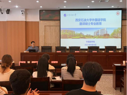 9月4日下午,外国语学院2025级翻译硕士研究生开学典礼暨入学专业教育在鄠邑校区图书馆第一会议室举行。学院党委书记张建高、副书记邱岭、副院长陈武、邓林、研究生导师以及25级翻译硕士研究生参加会议。会议由院党委副书记邱岭主持。