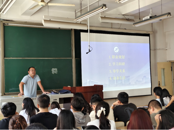 曹勃则从新生成长需求出发,围绕职业规划、学习科研、导学关系、业余生活四大维度分享经验。他建议新生结合自身兴趣与学科发展趋势制定职业目标,合理平衡学习与科研时间,主动搭建良性导学沟通桥梁,同时积极参与校园文化活动,实现学业进步与综合素质提升的双向发展。